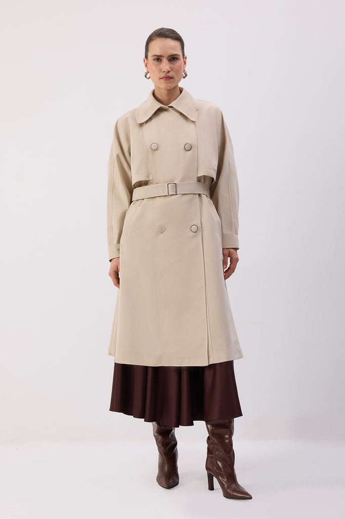 BUTTONED STAND-UP COLLAR TRENCH COAT