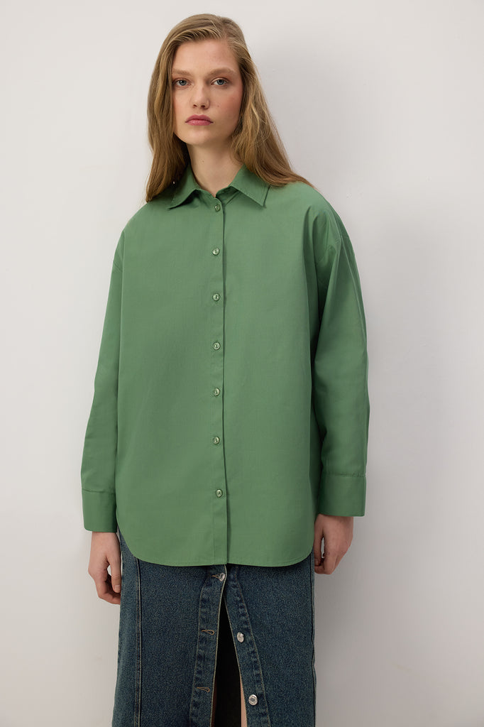 GOLD BUTTONED OVERSIZED POPLIN TUNIC