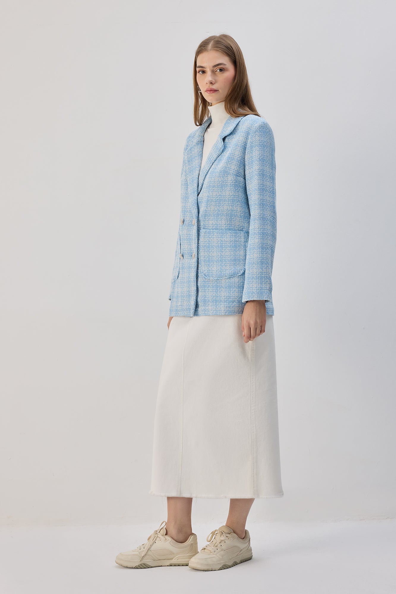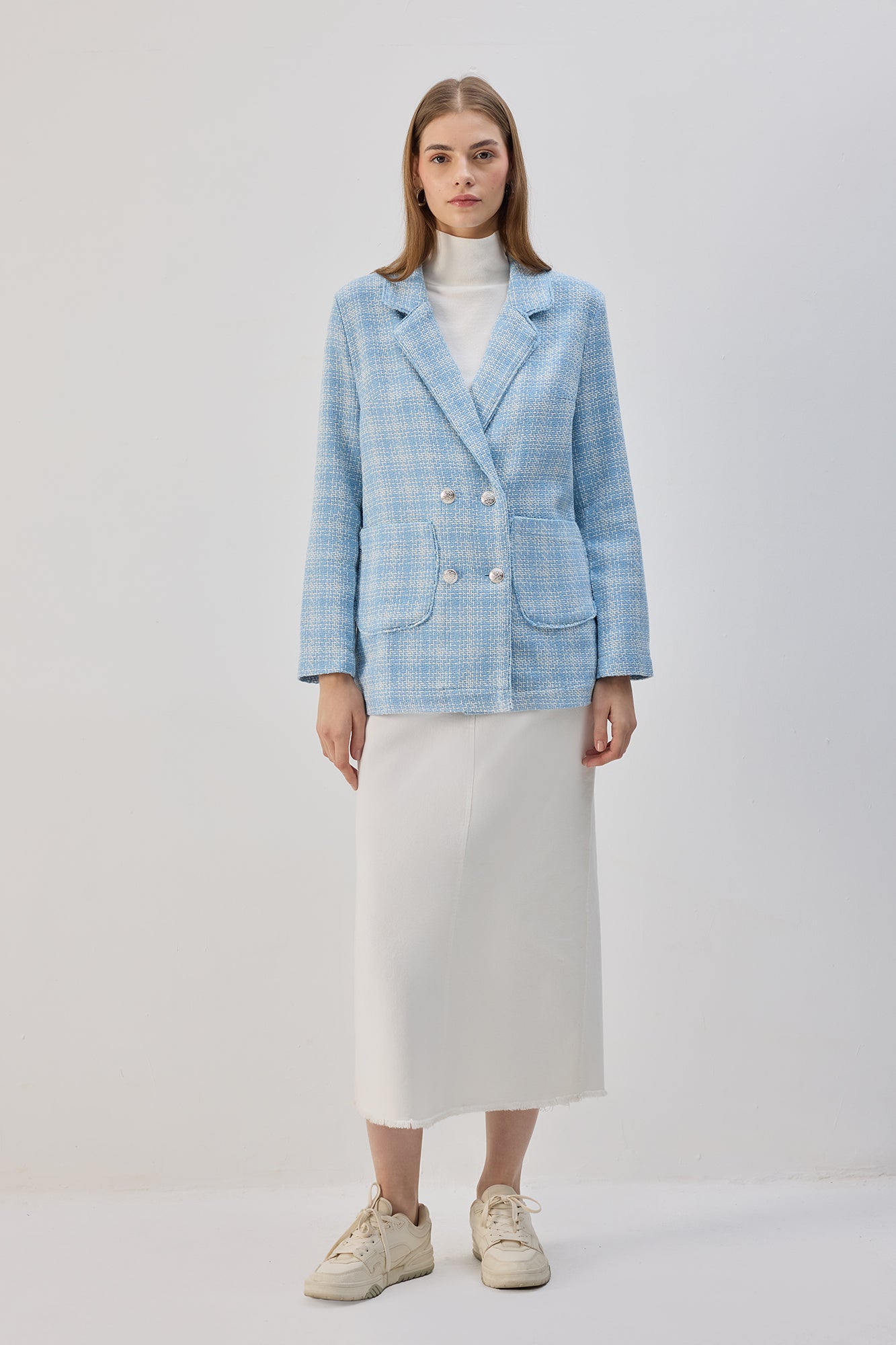 PLAID TWEED BLAZER JACKET