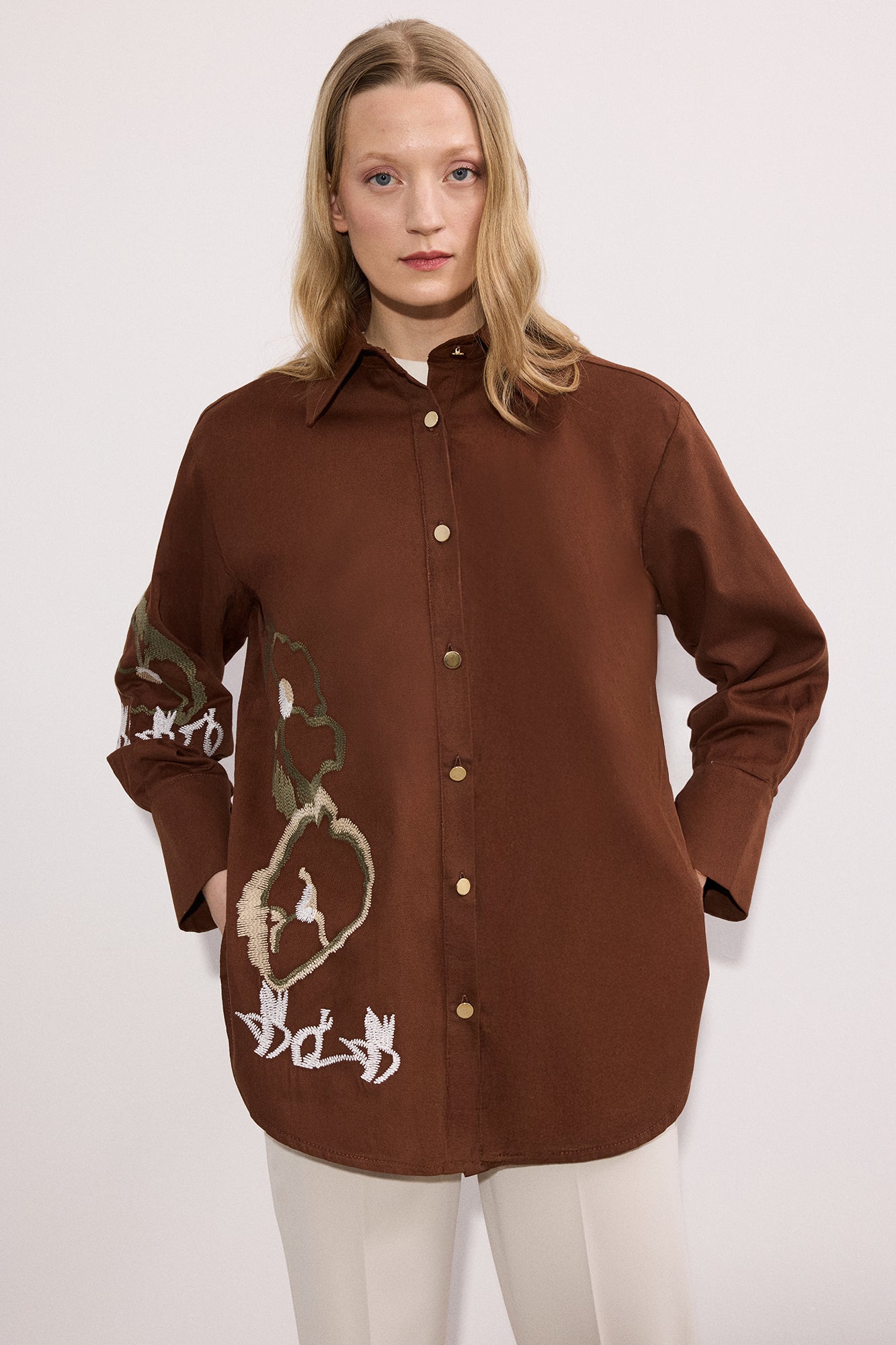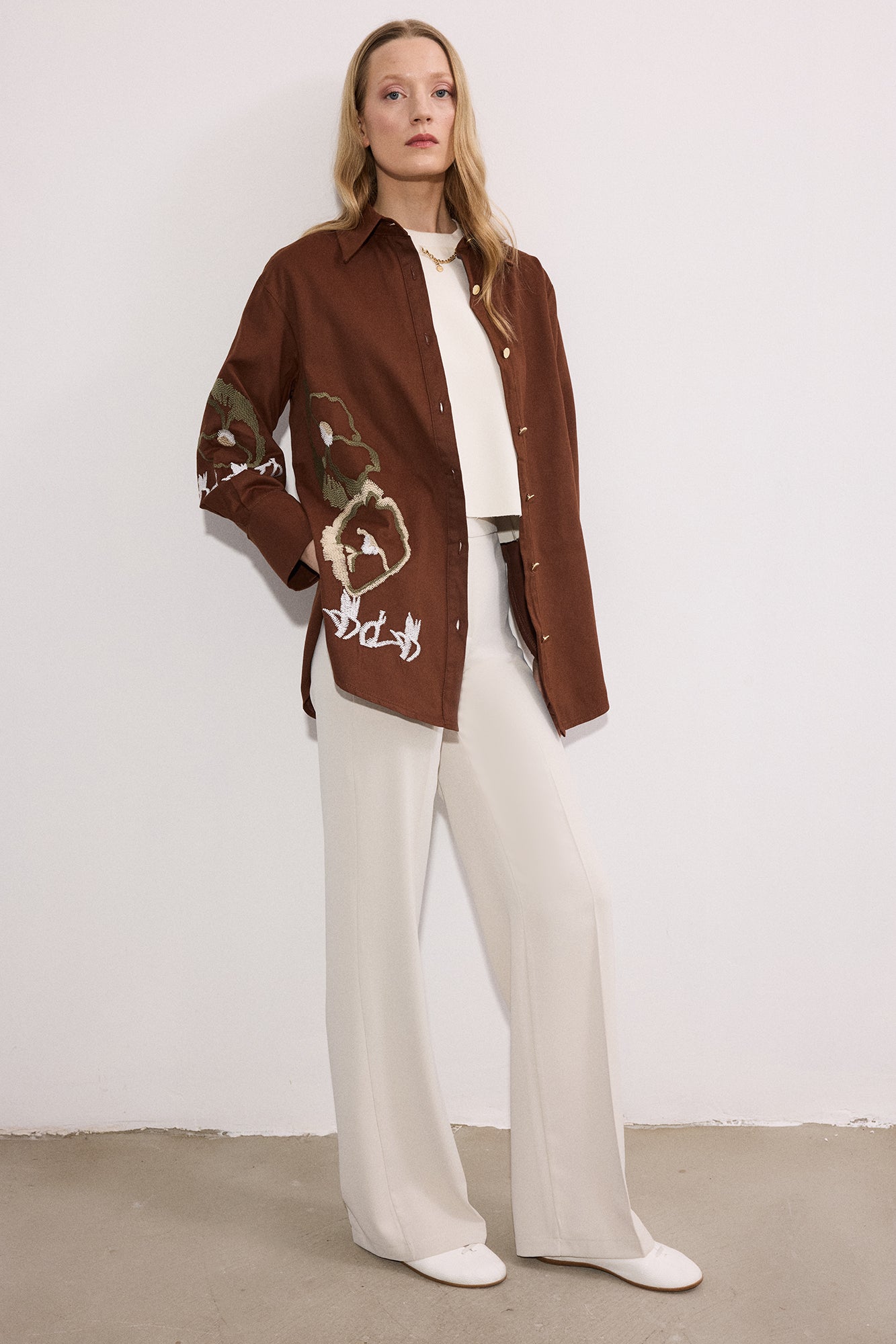 EMBROIDERIED GABARDINE SHIRT-JACKET