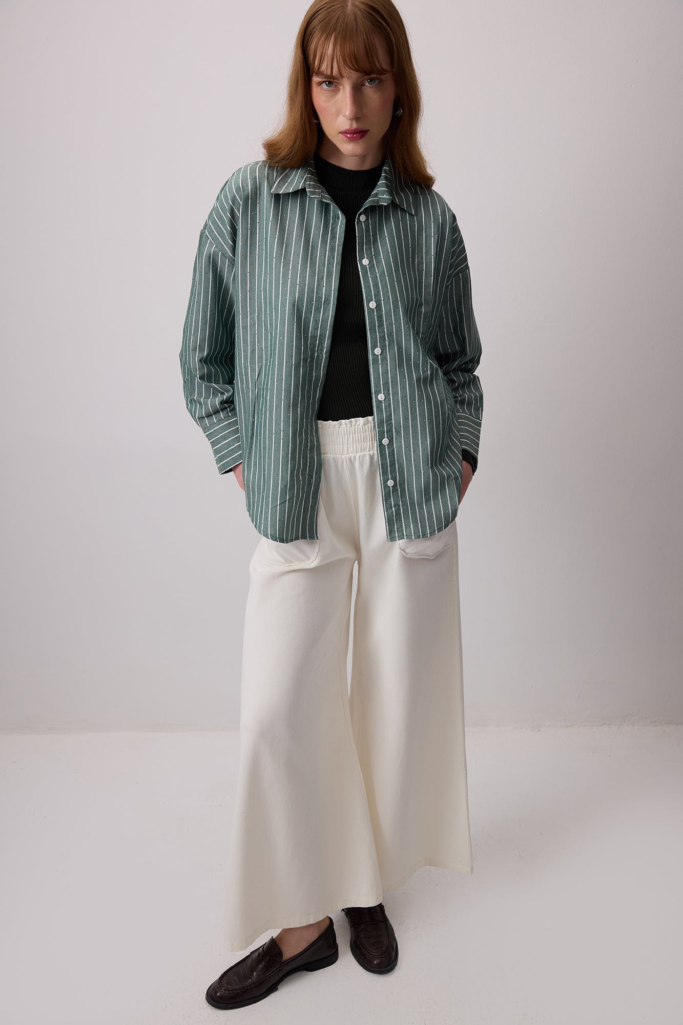 STONE EMBROIDERED STRIPED POPLIN SHIRT