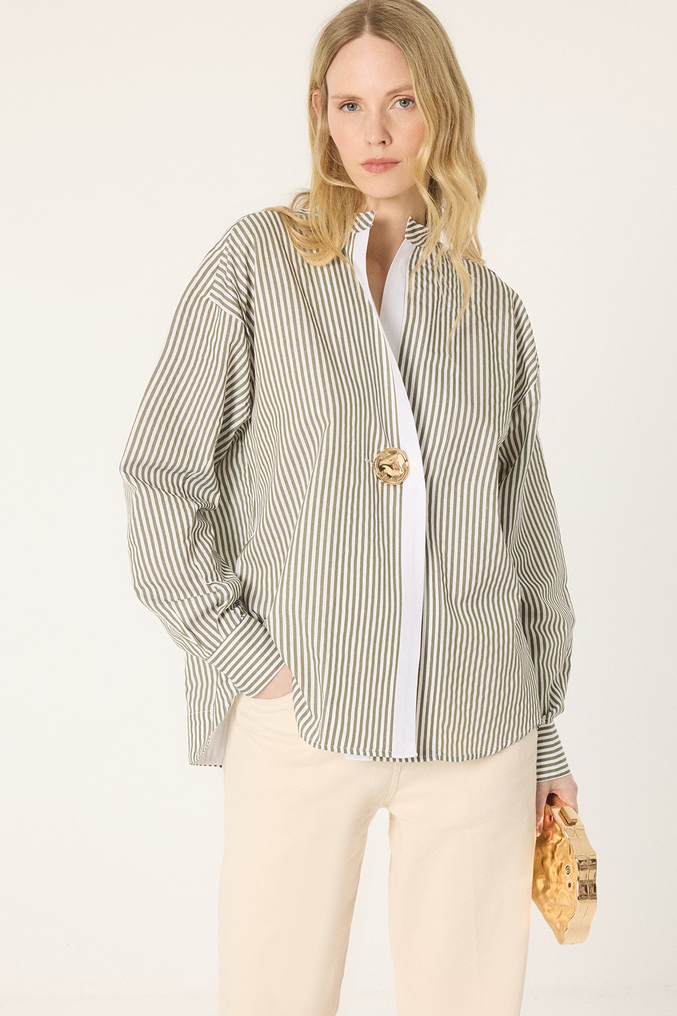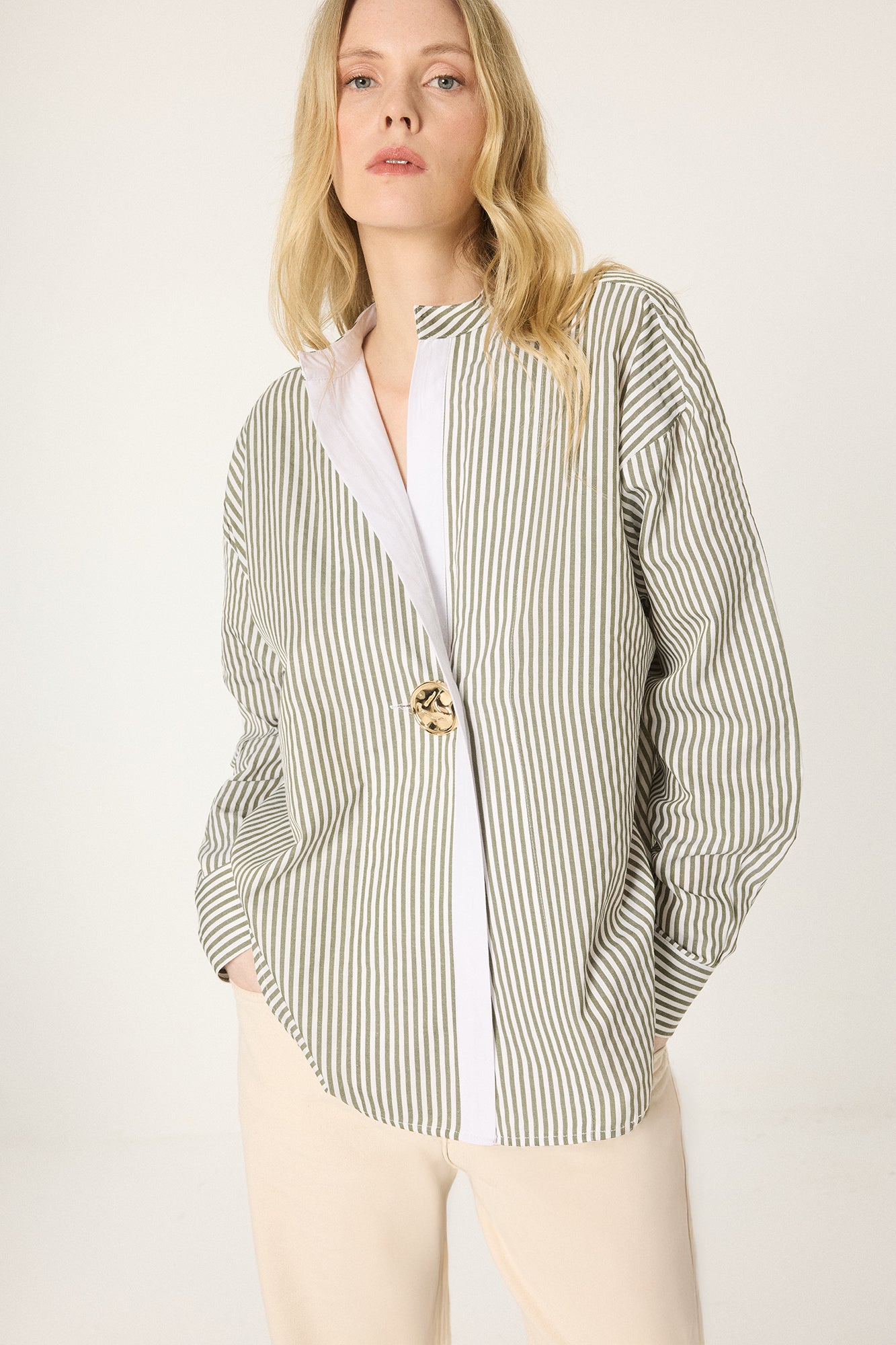 STRIPED TUNIC WITH METAL BUTTONS