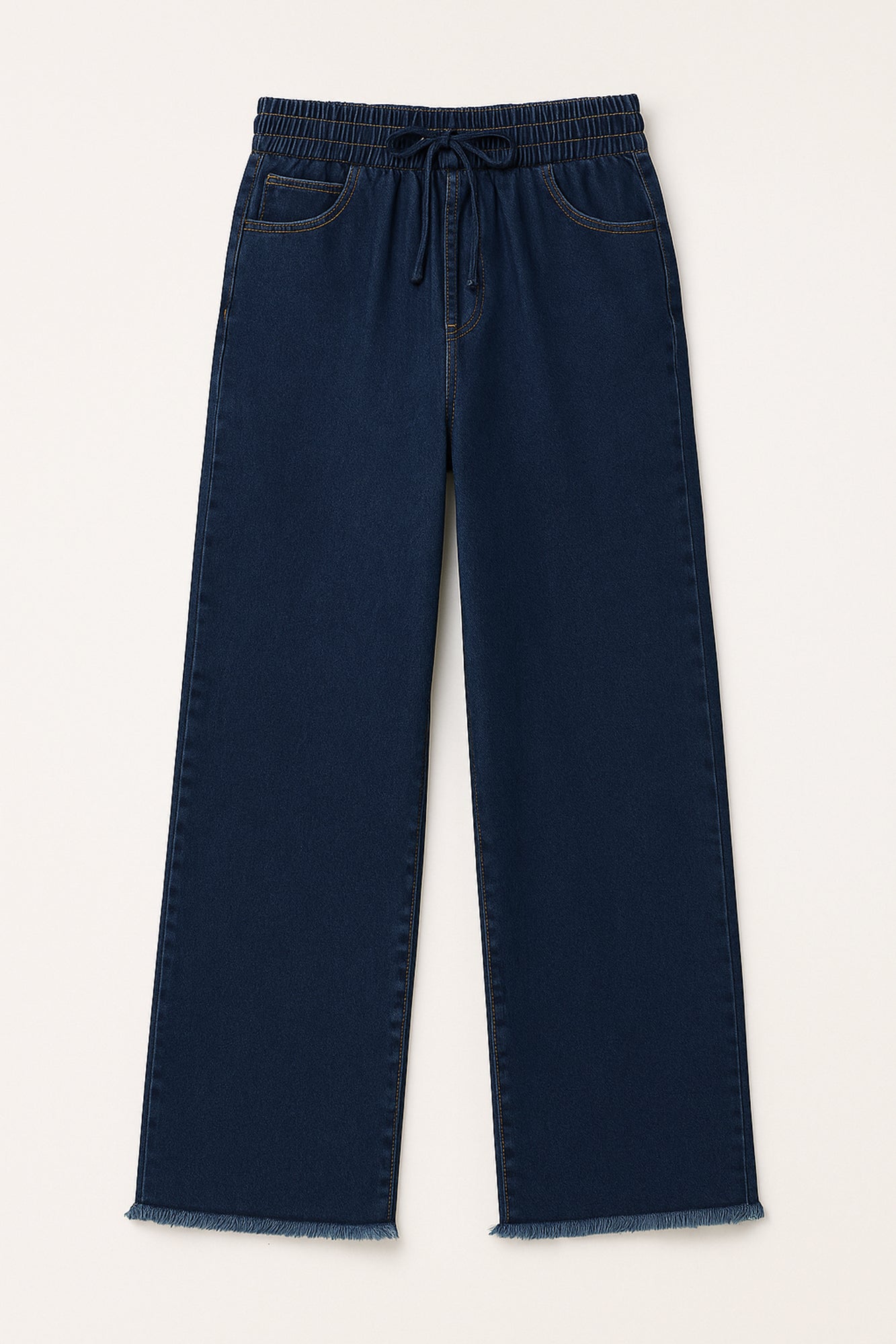 ELASTICATED WAIST DENIM TROUSERS