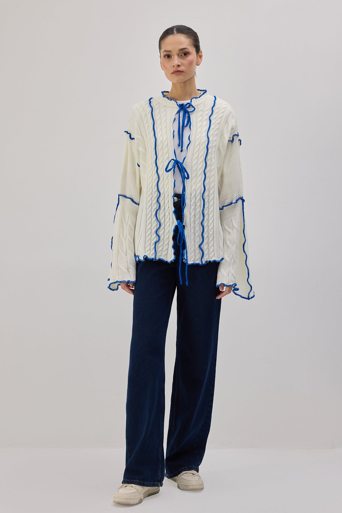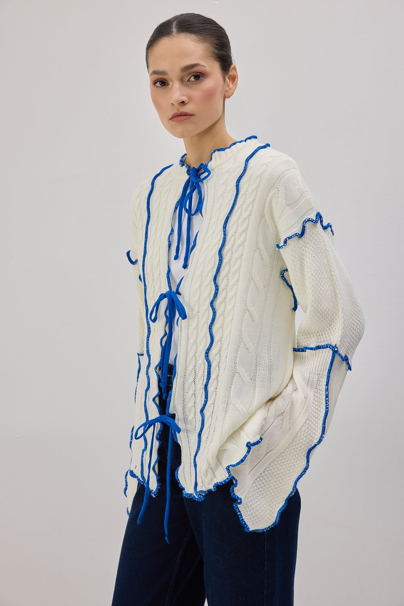 CONTRAST BELTED KNIT CARDIGAN
