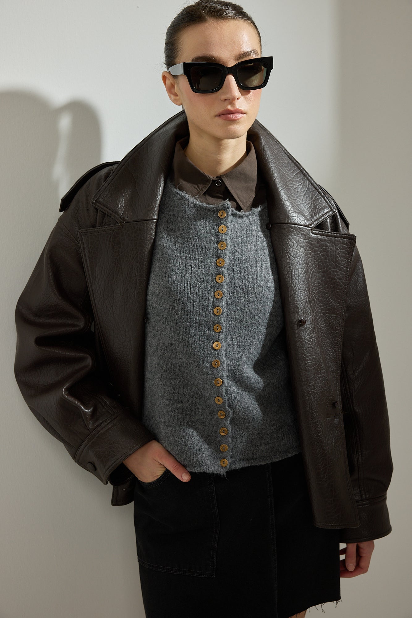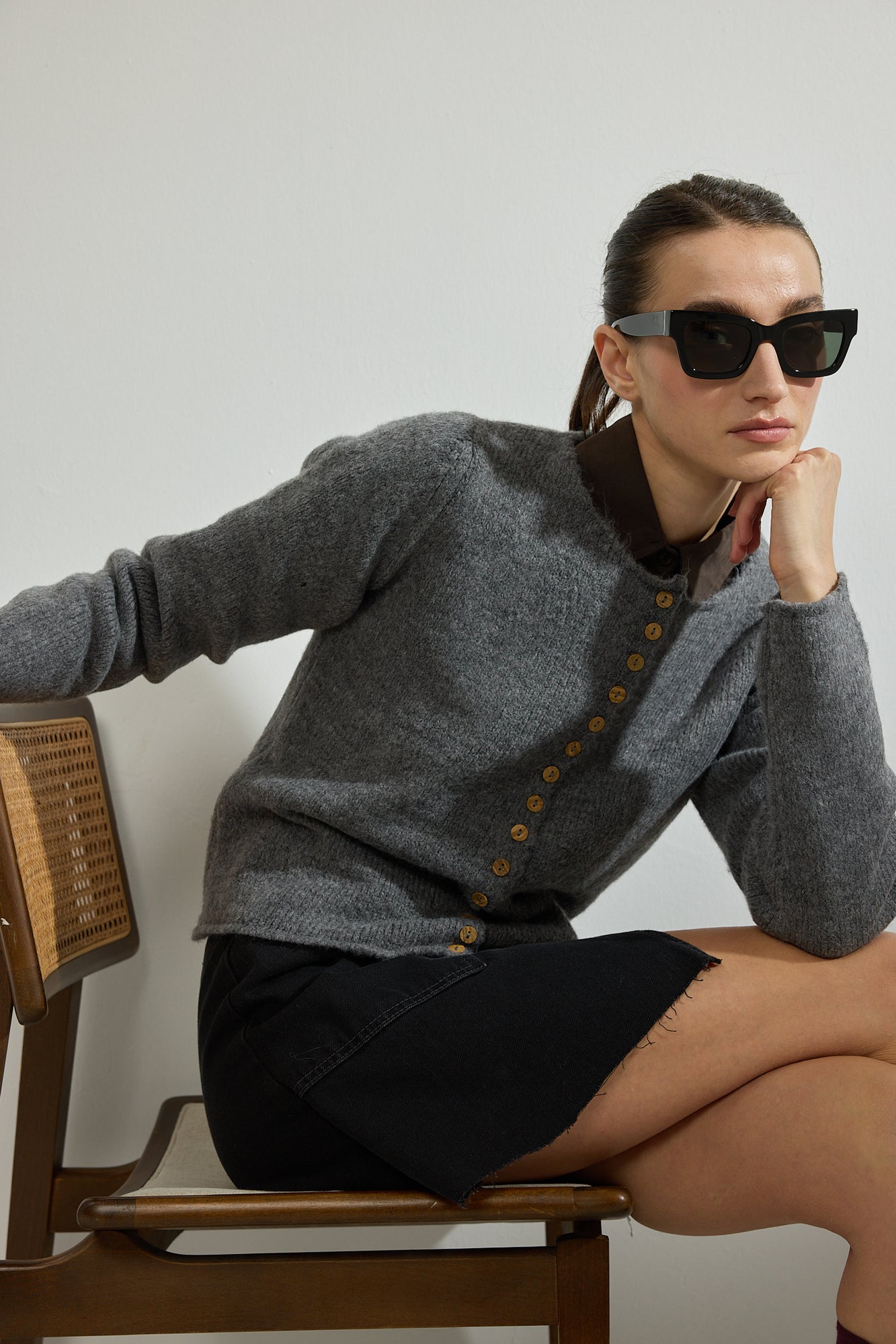 SHORT BUTTONED KNITTED CARDIGAN