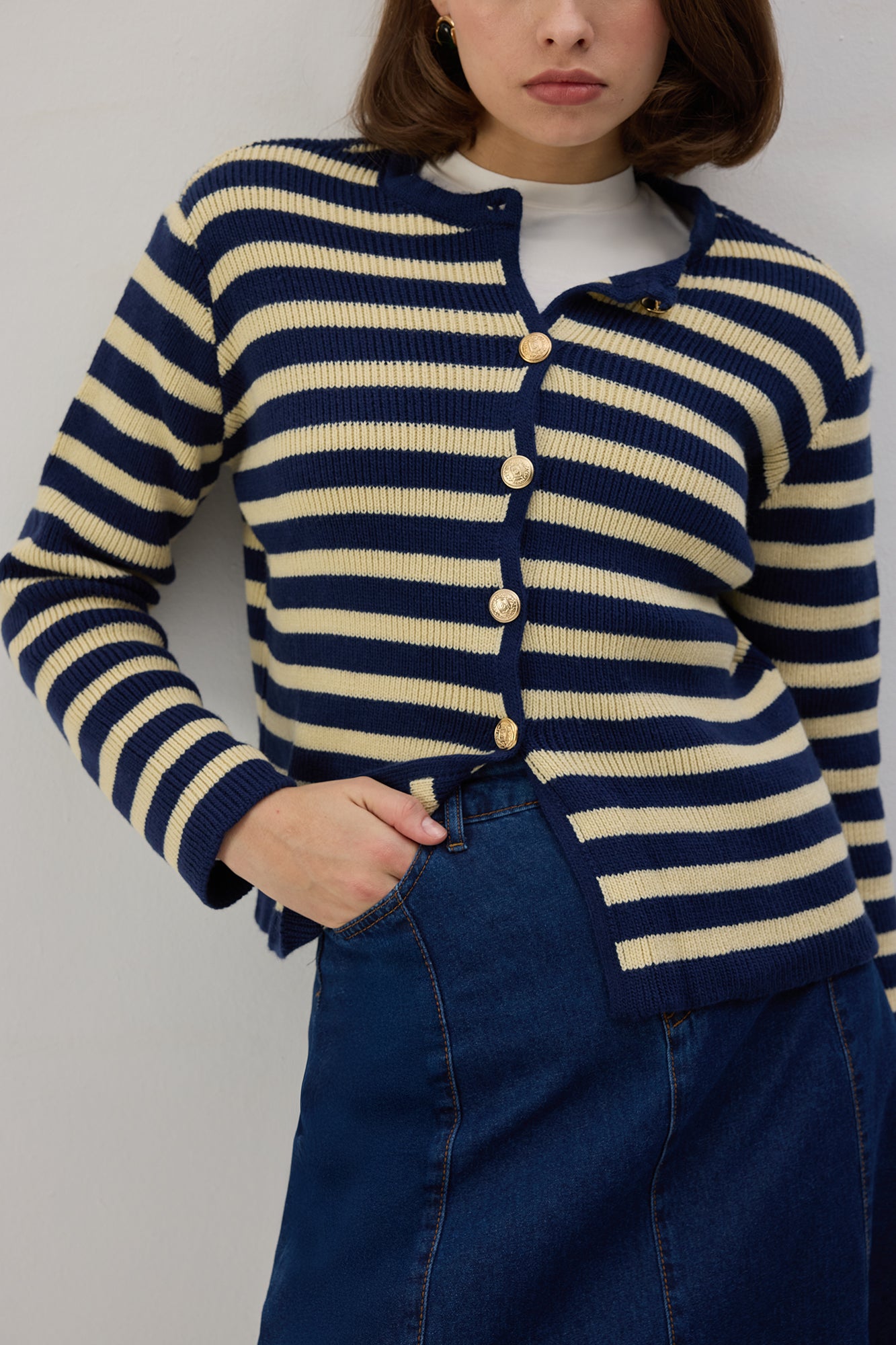 STRIPED SHORT CARDIGAN WITH GOLD BUTTONS