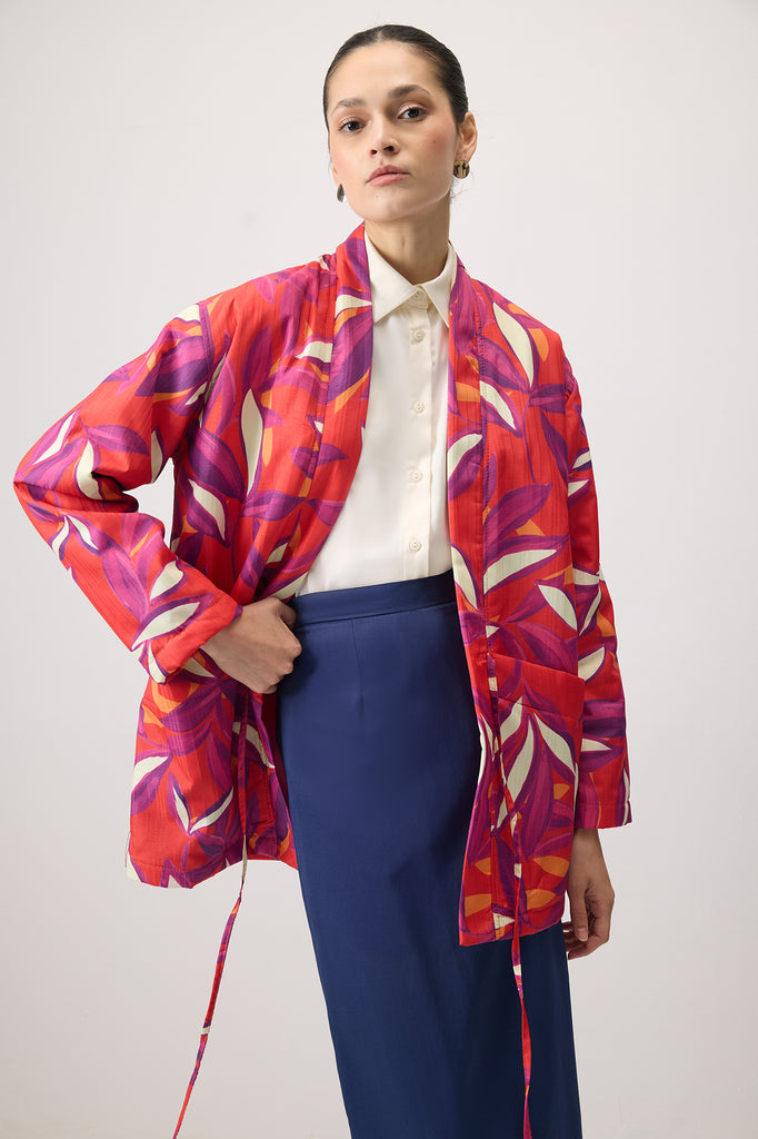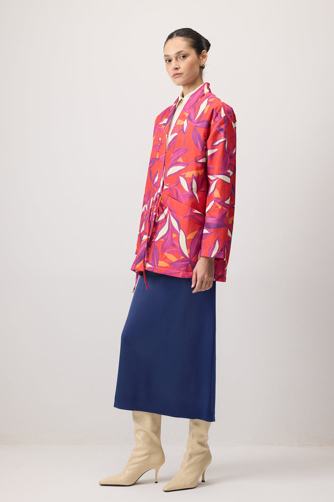 FRONT TIE PATTERNED COAT