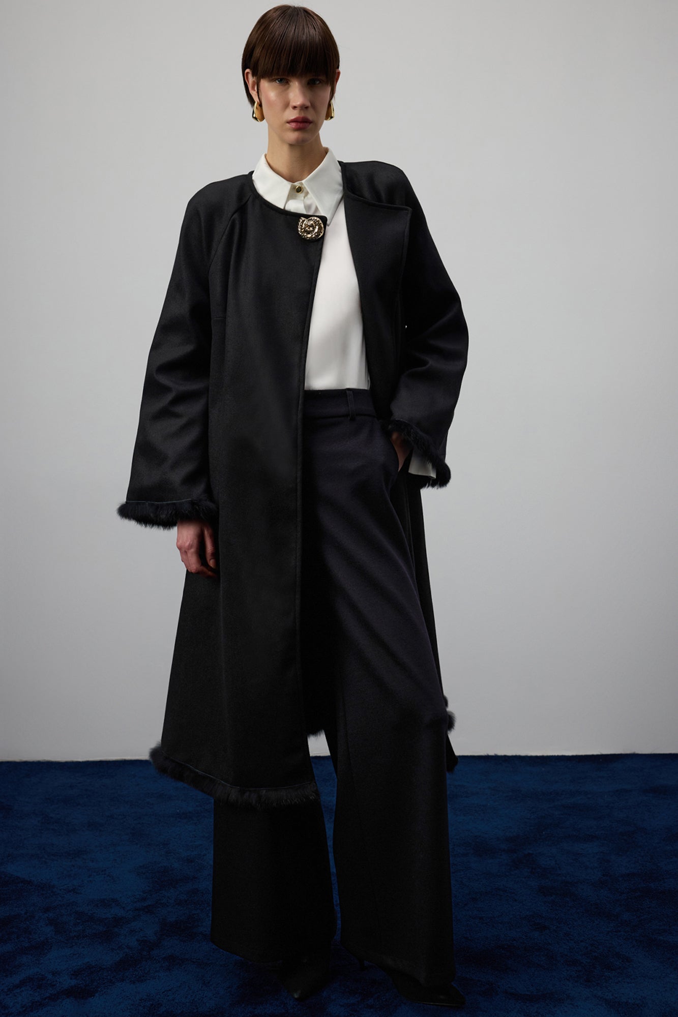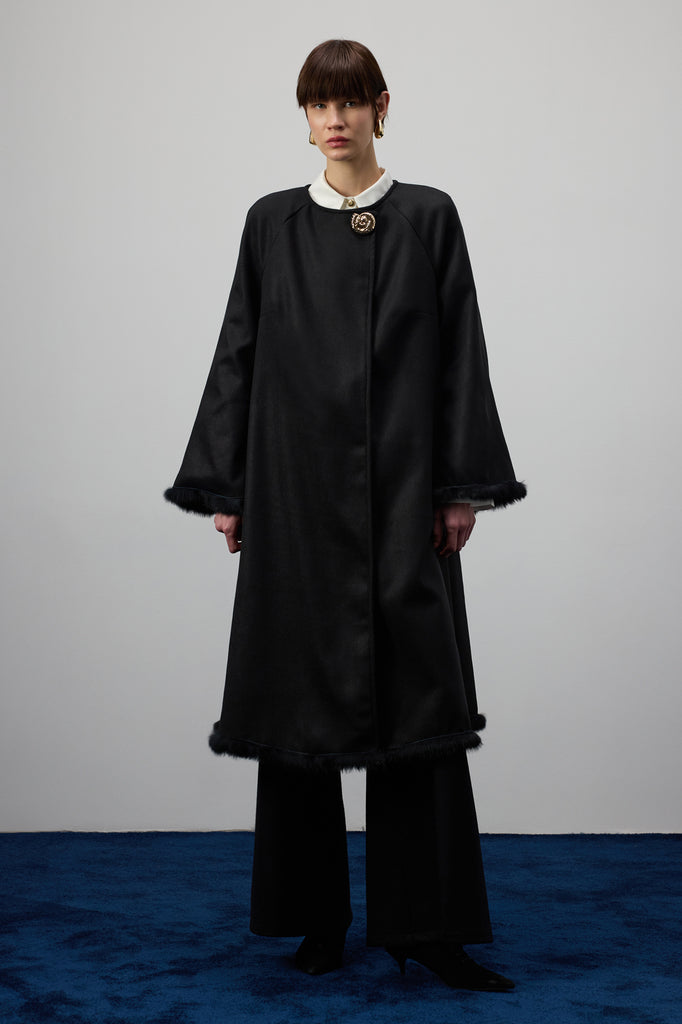 WOOL CASHMERE COAT WIT FUR DETAILS