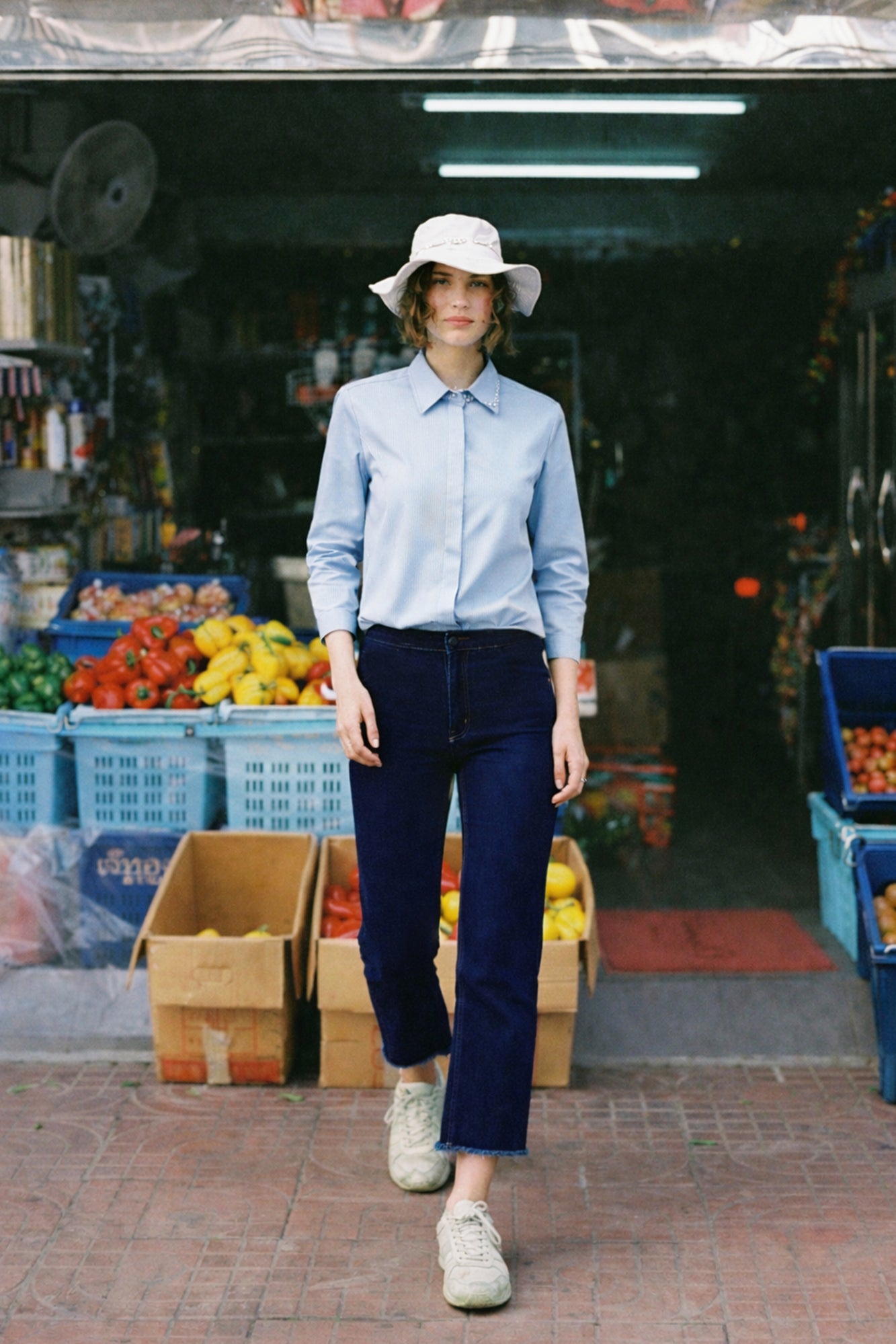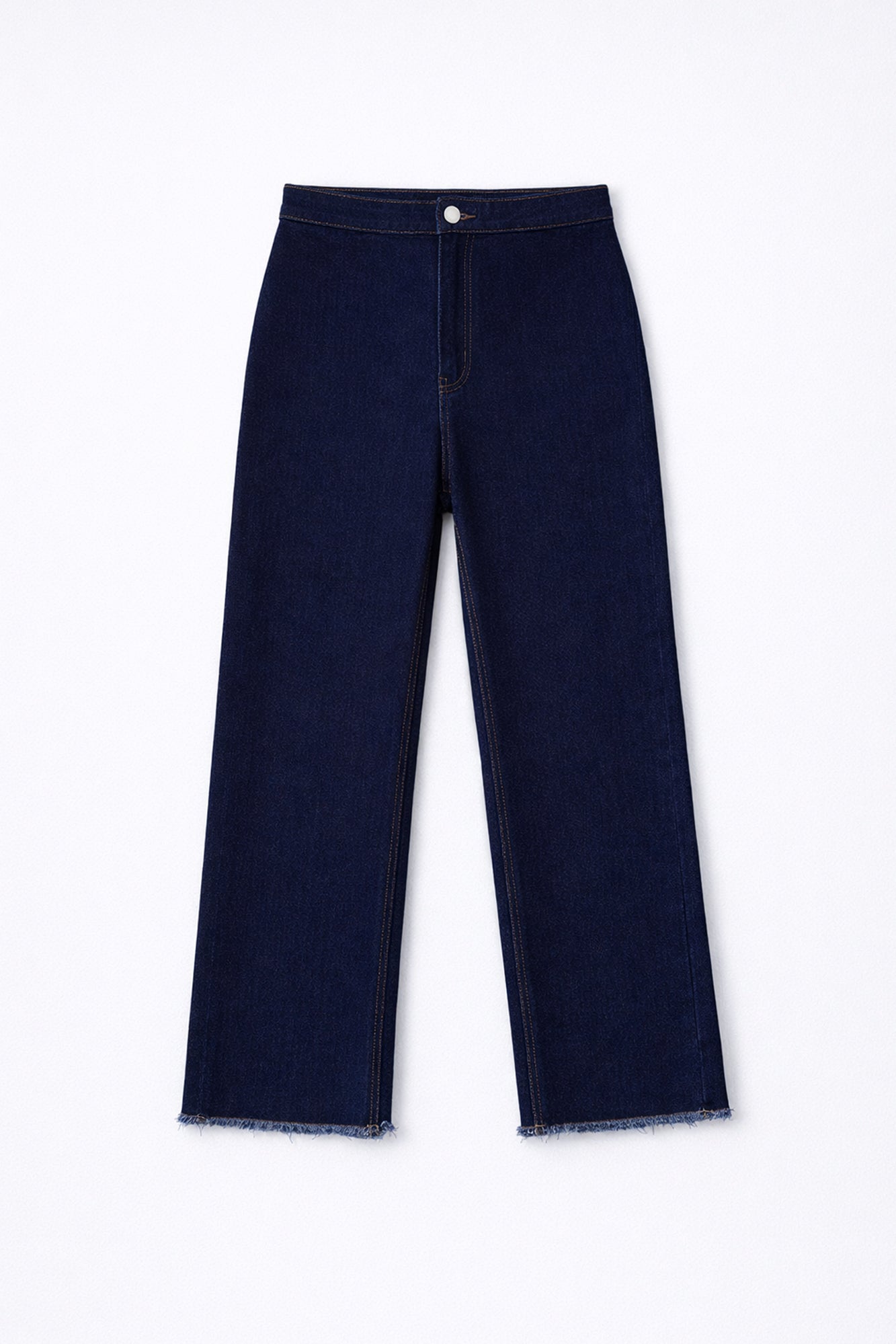 These denim trousers offer a perfect balance of comfort and style, with a high-waisted design and trendy fringed cuffs. Made from soft and durable denim, they are ideal for day-to-day wear, bringing a modern edge to your casual looks. Pair them with a tucked-in blouse or oversized shirt for a chic, effortless outfit.
