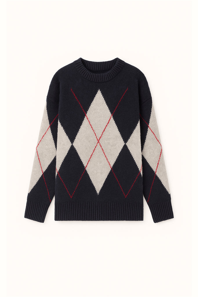 DIAMOND PATTERNED KNIT SWEATER