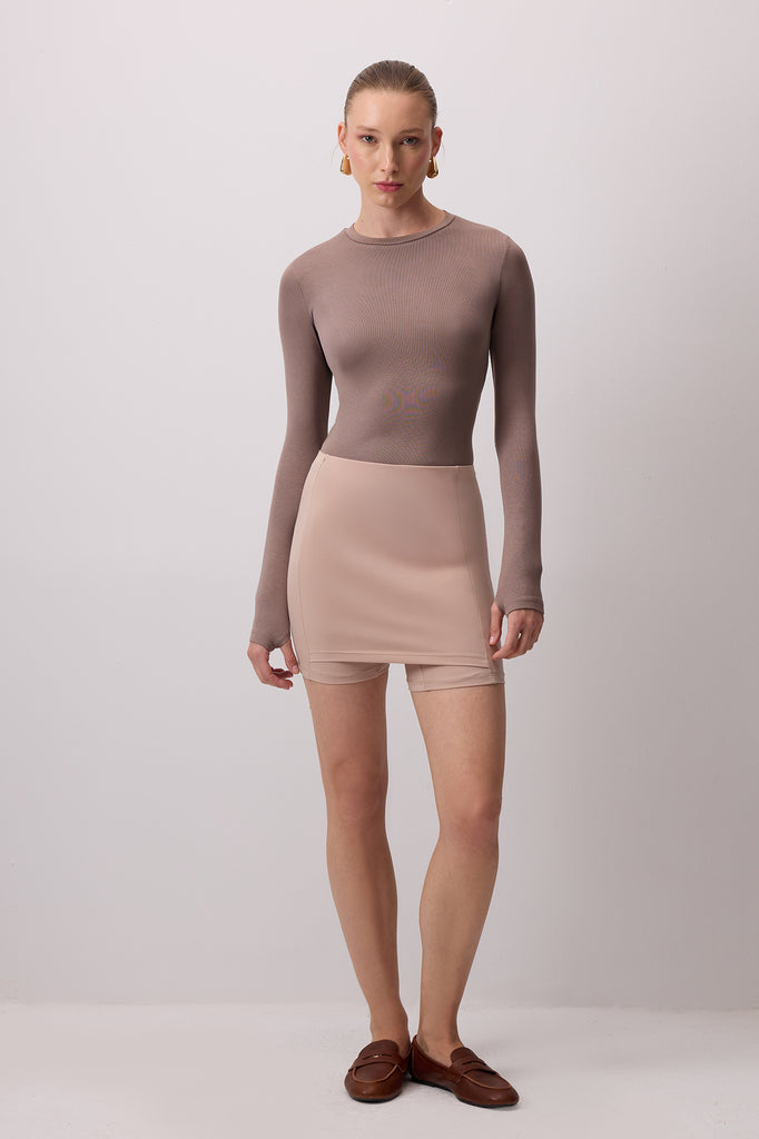 DENIM EFFECTED ELASTIC WAIST SKIRT
