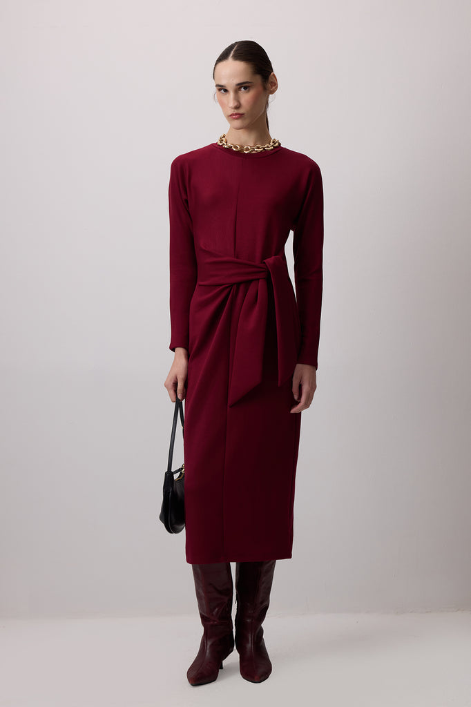 LINEN TEXTURED DRESS WITH SHELL BUTTON