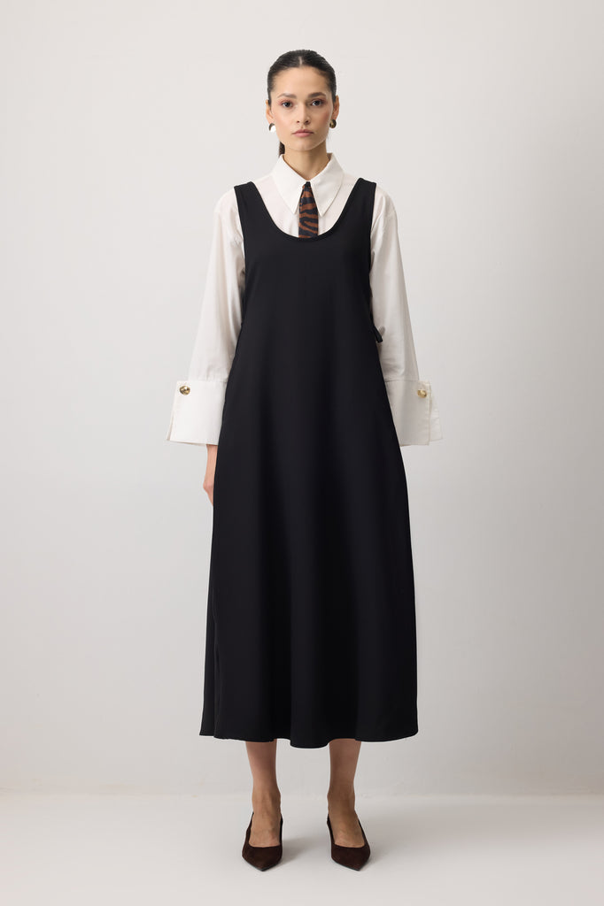 PLEATED POPLIN DRESS WITH FLORAL DETAILS