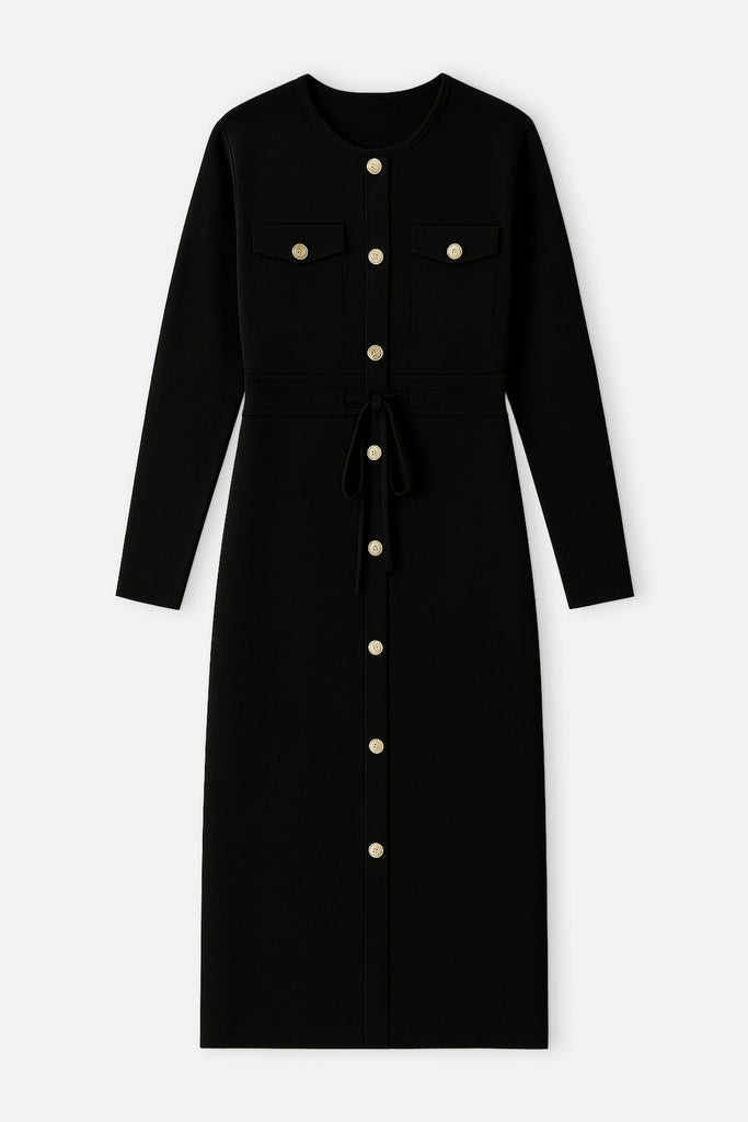 PATTERNED DRESS WITH FAUT LEATHER BELT