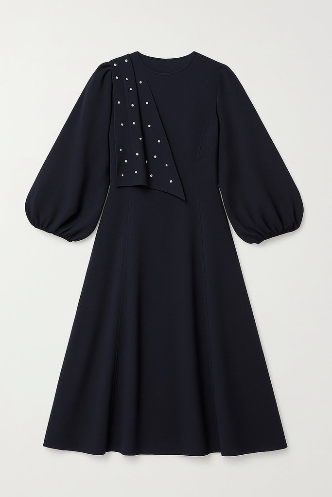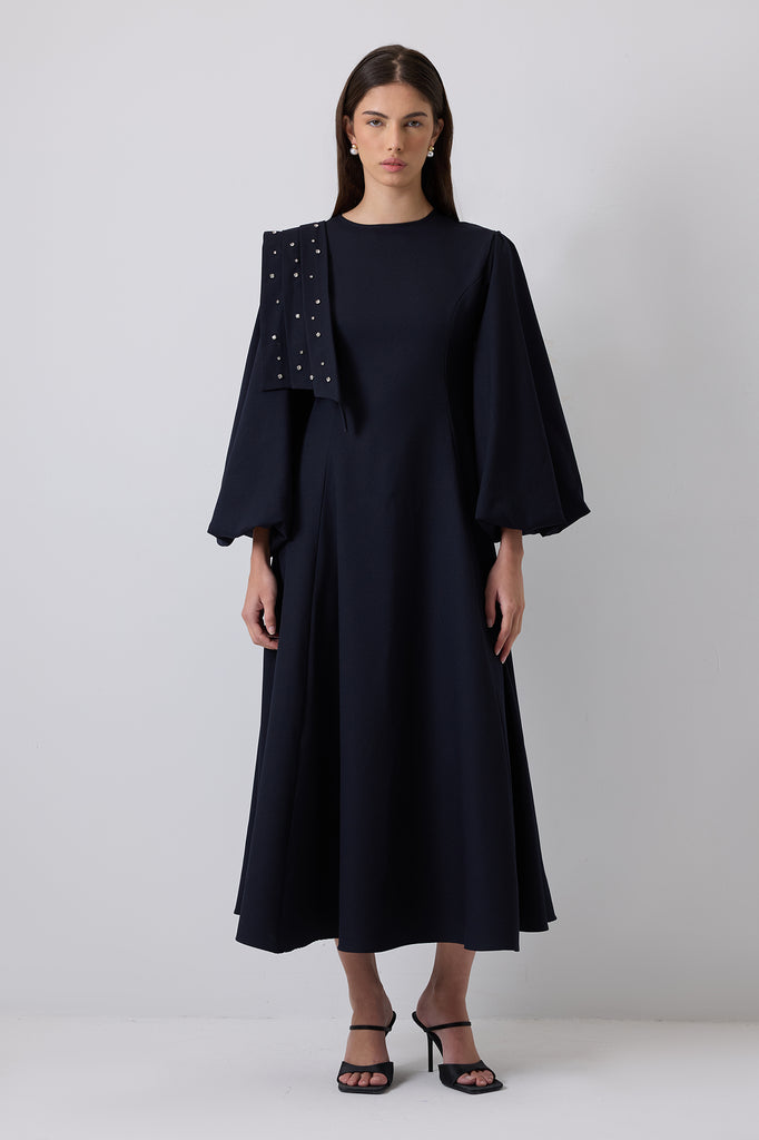 STONE EMBROIDERED BALLOON SLEEVED DRESS