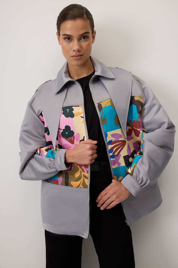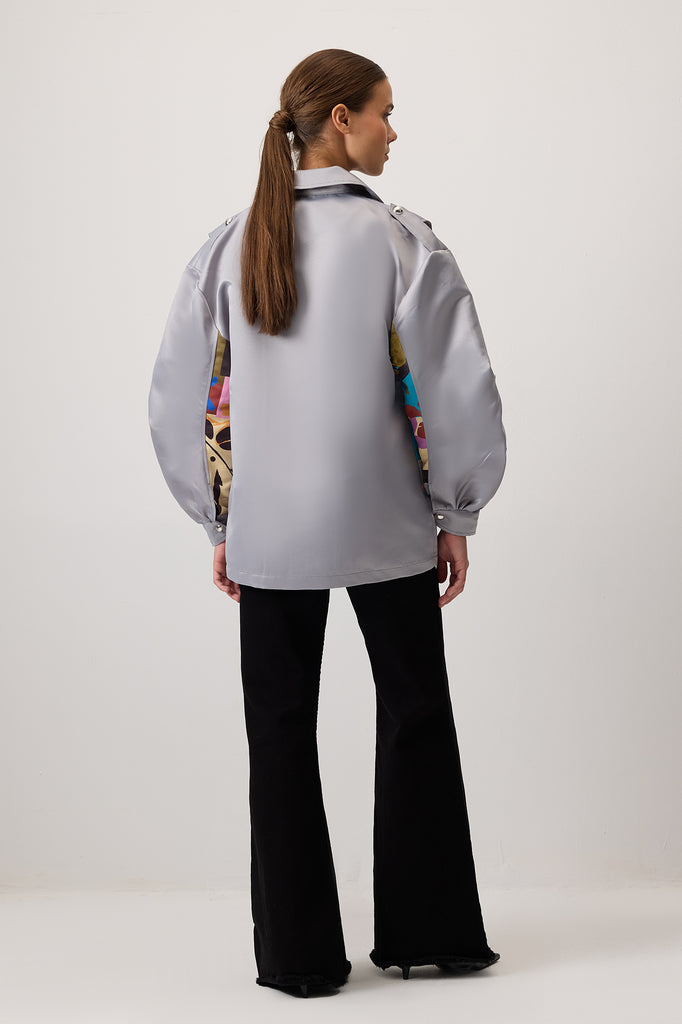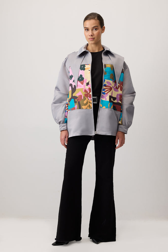 ZIPPERED SATIN BOMBER JACKET