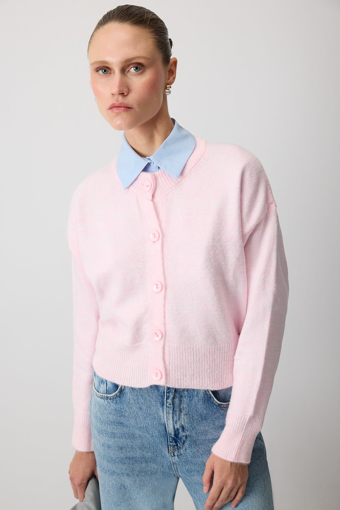 BUTTONED CROP KNIT CARDIGAN