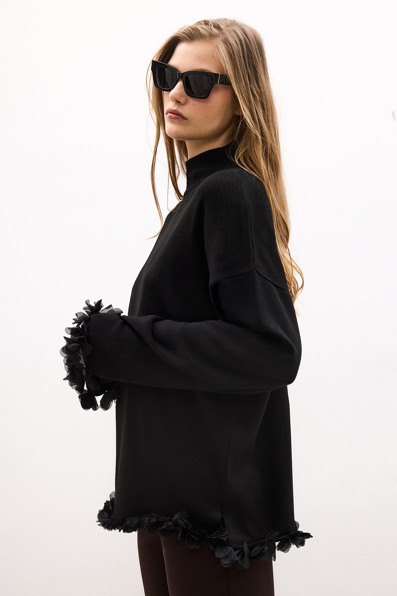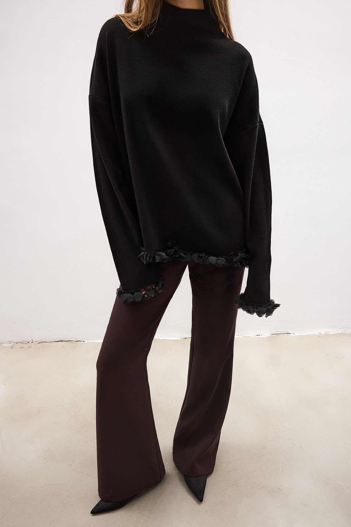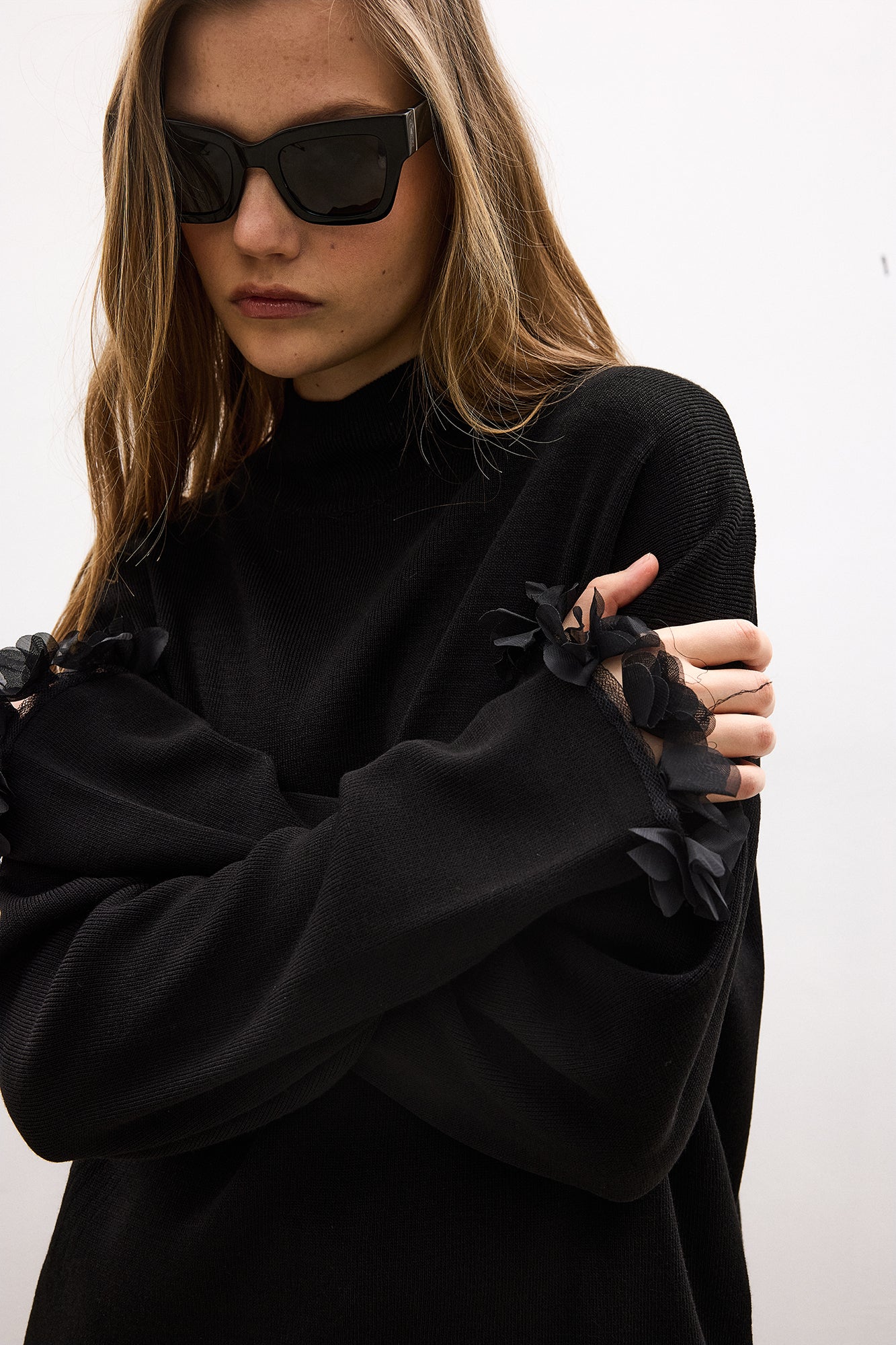 KNIT SWEATER WITH CHIFFEN TASSELS
