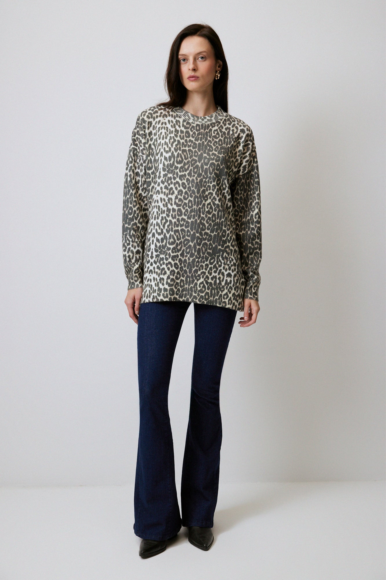 Make a bold statement with this Leopard Patterned Knit Tunic, crafted for a stylish and cozy addition to your wardrobe. Featuring a chic leopard print and a relaxed fit, this tunic is perfect for pairing with jeans or tailored pants for an effortlessly trendy look. The soft knit fabric ensures all-day comfort, while the long sleeves add a touch of elegance.