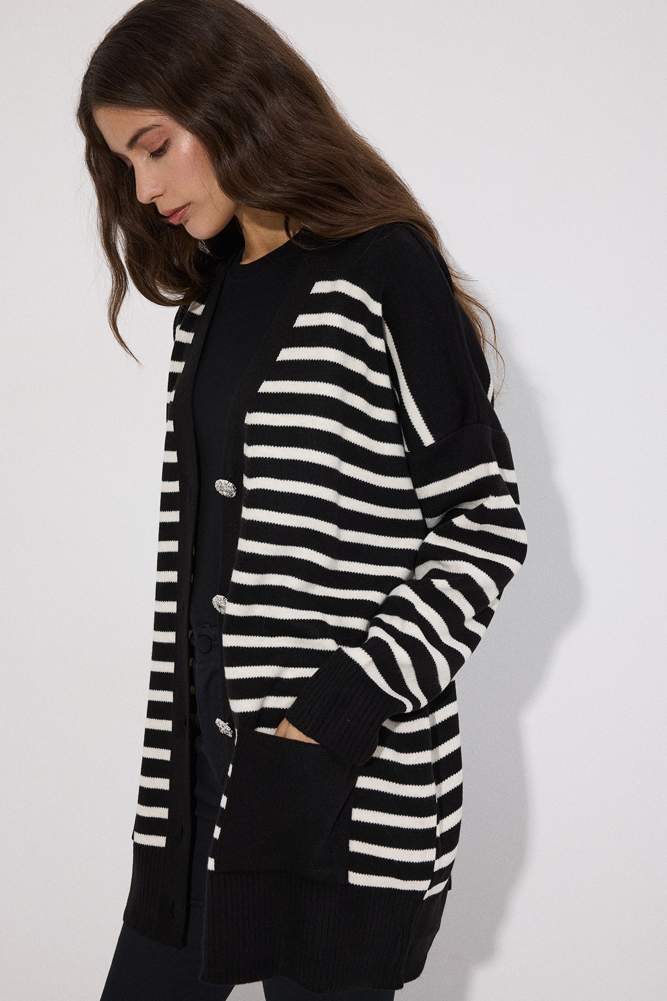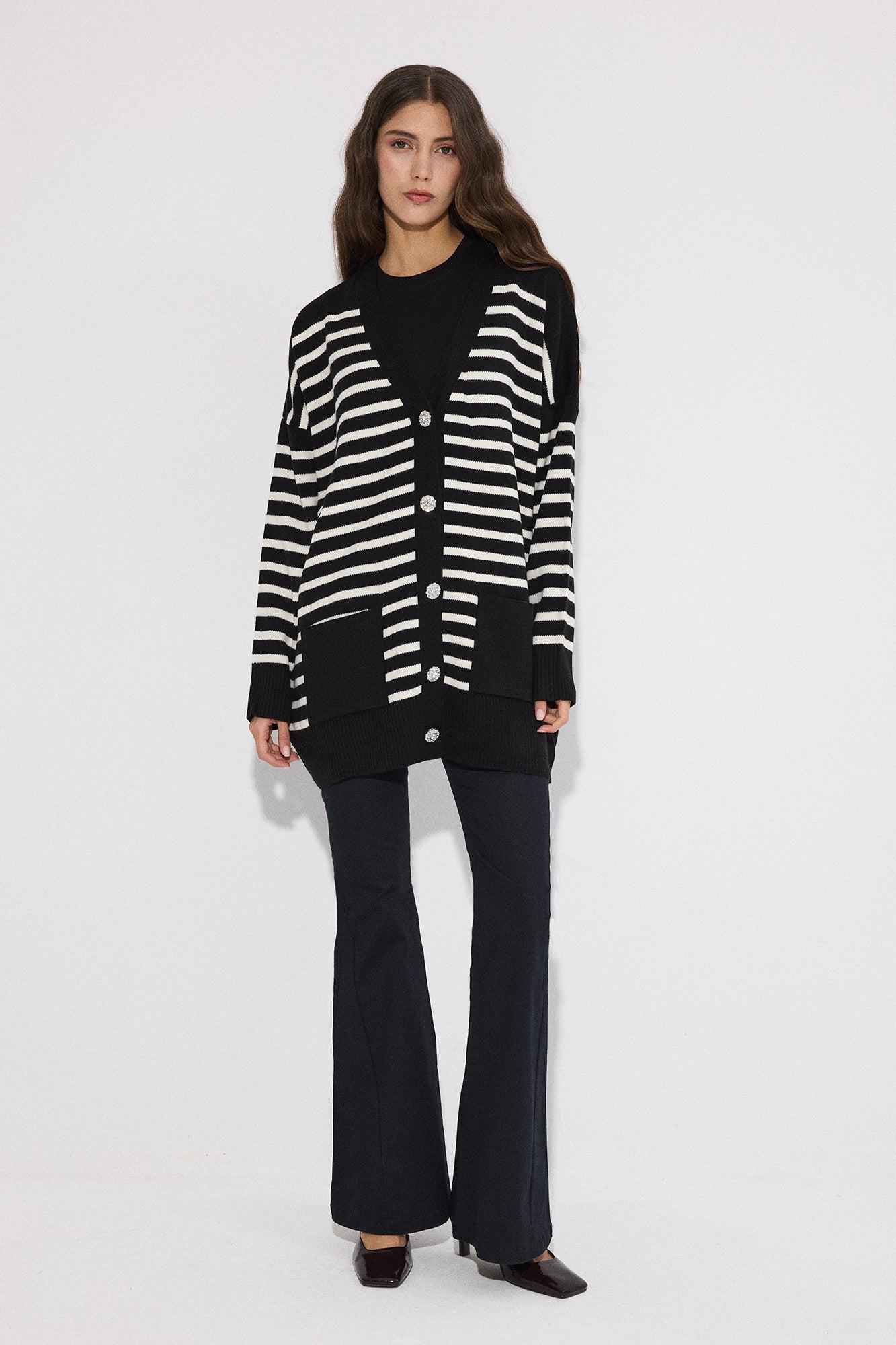 POCKET DETAILED OVERSIZE KNIT CARDIGAN