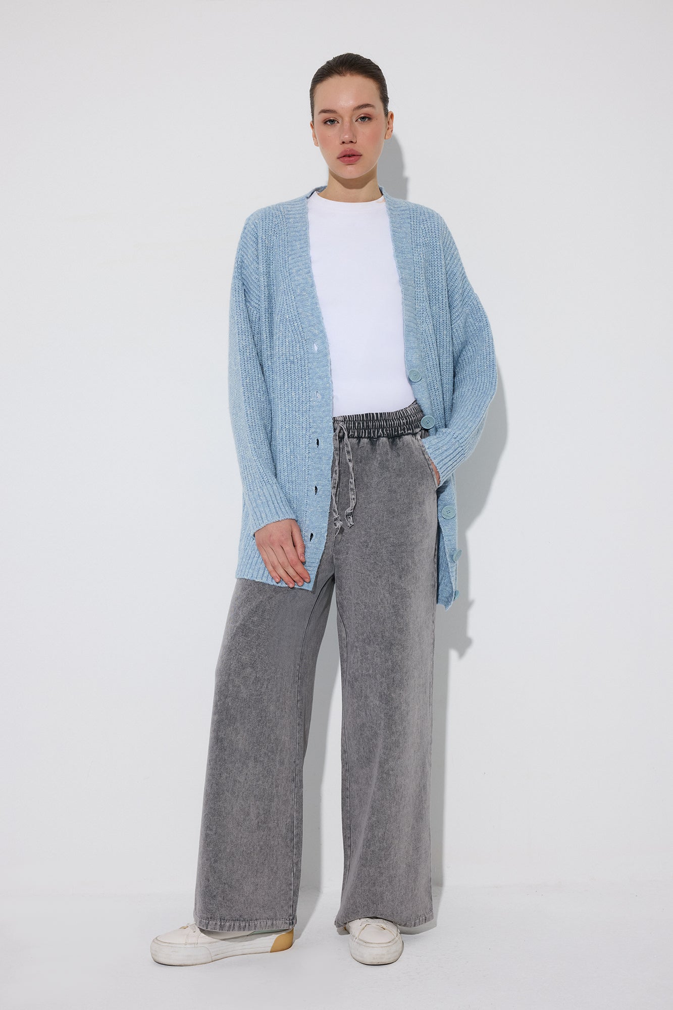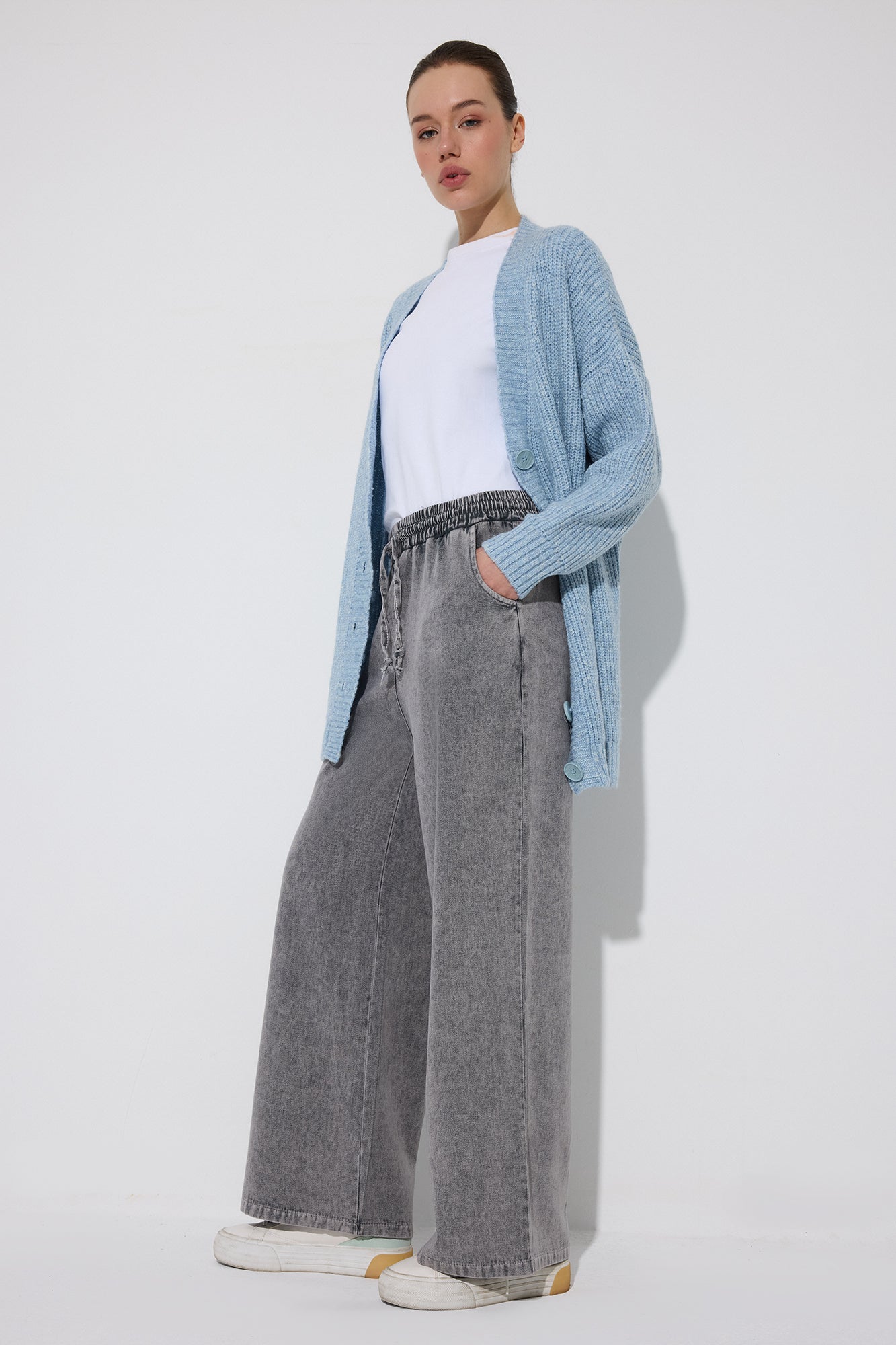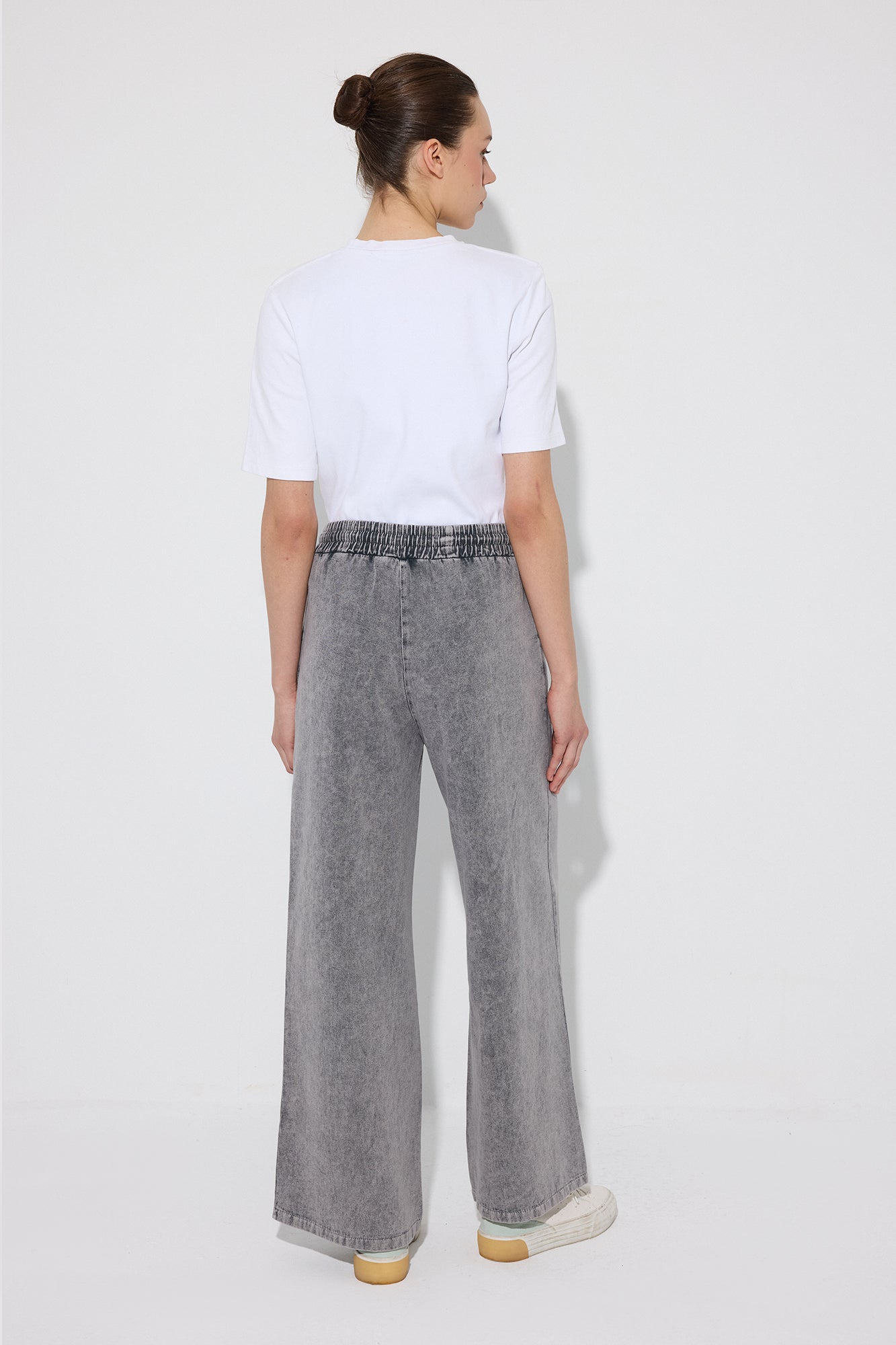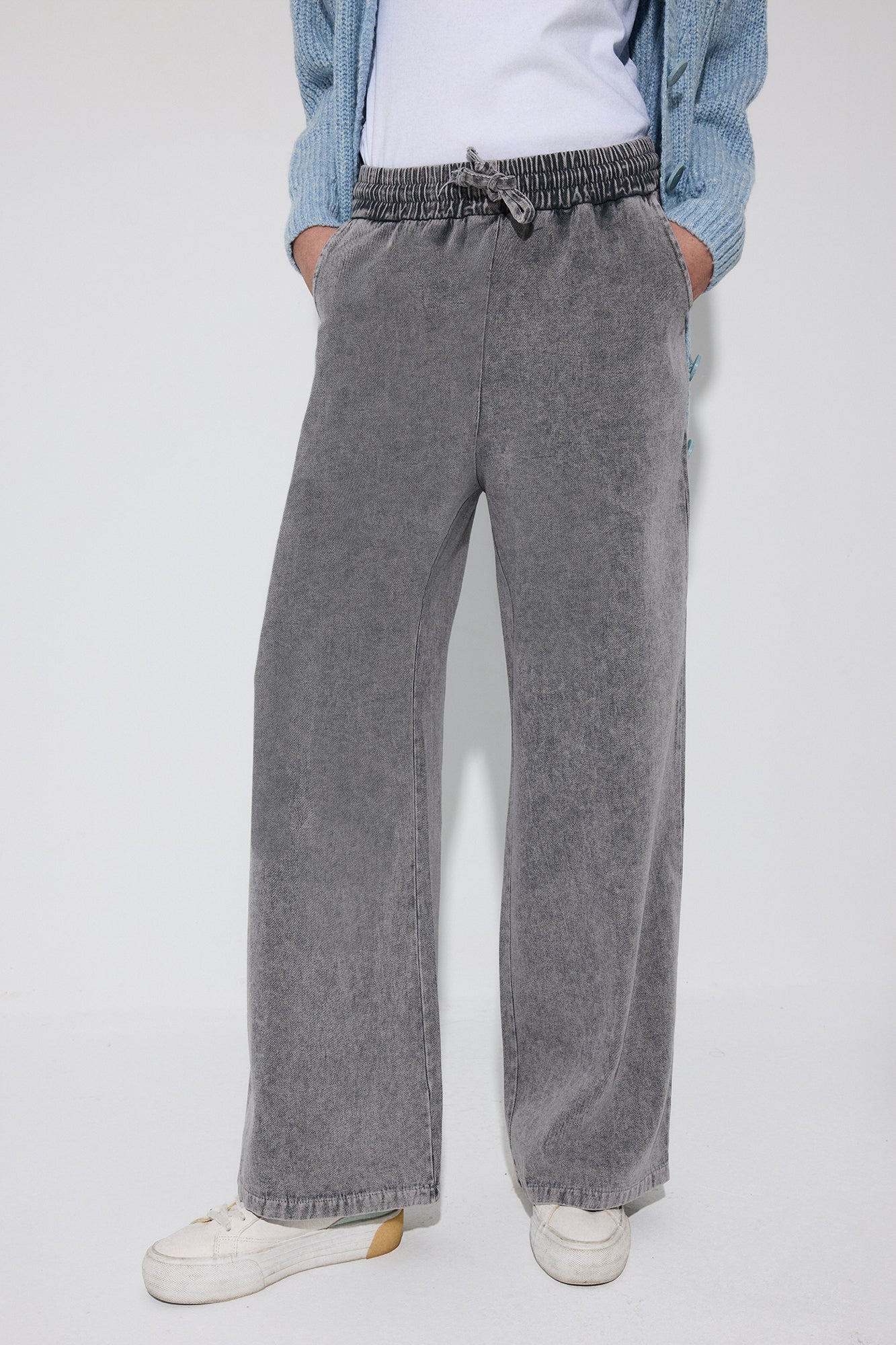 WIDE-LEG DENIM PANTS WITH ELASTIC WAISTBAND