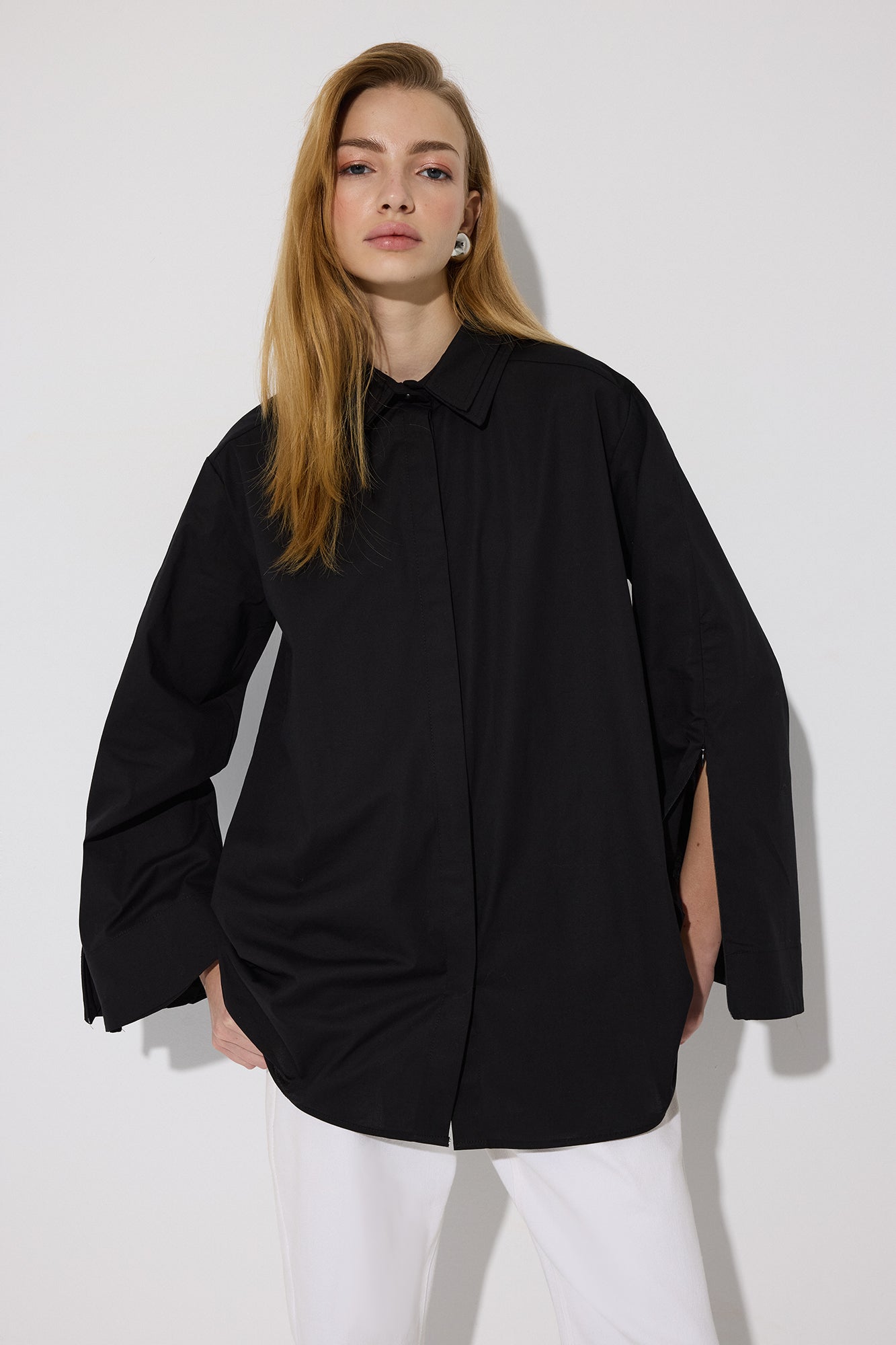ÇİFT YAKA KOLU FERMUARLI GÖMLEK