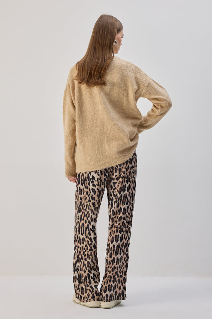 LEOPARD PATTERNED ELASTIC WAIST TROUSERS