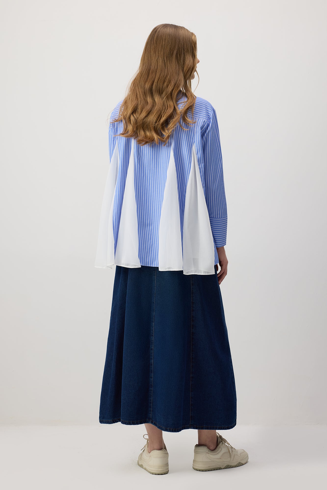 OVERSIZED STRIPED SHIRT WITH SHIFON DETAILS