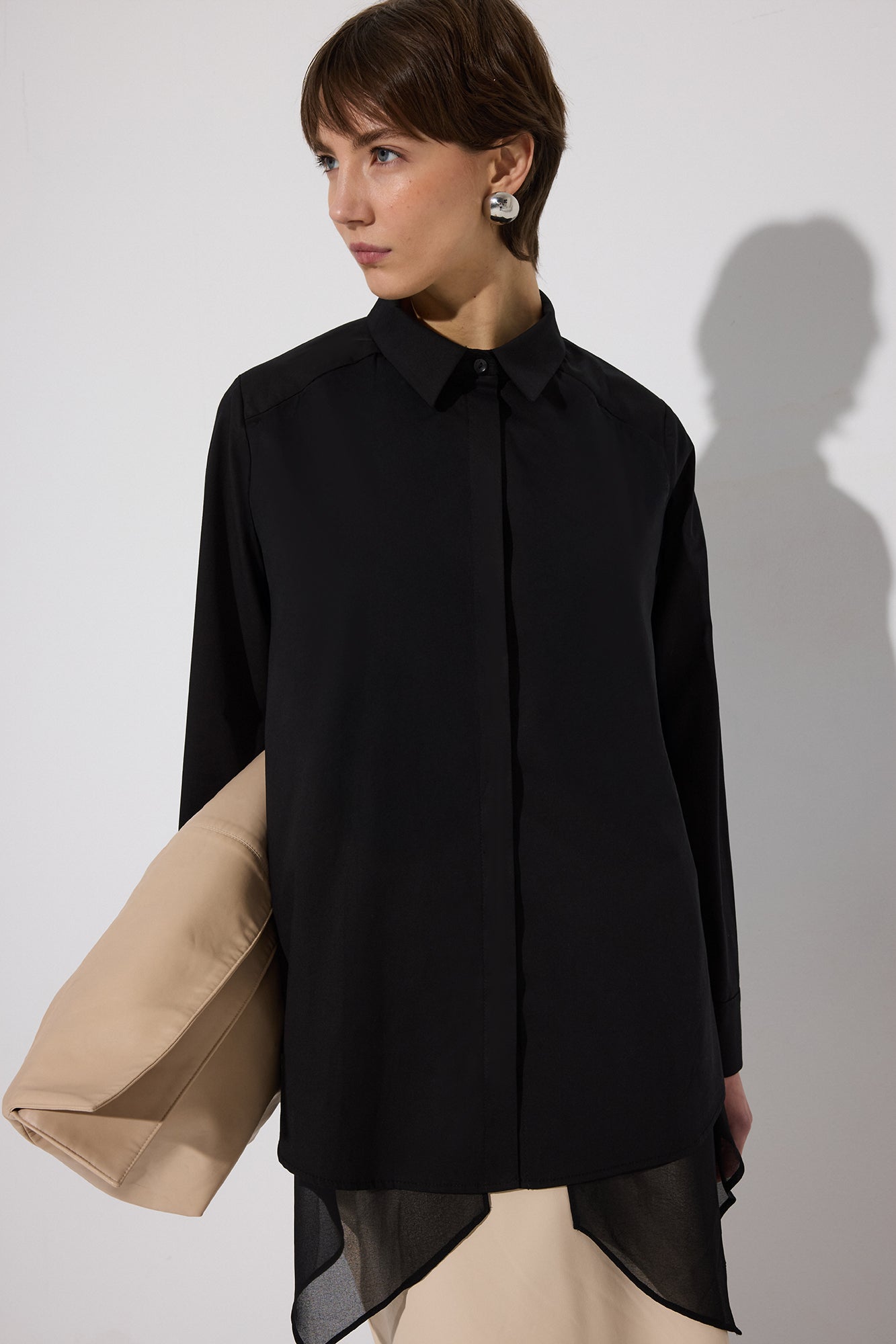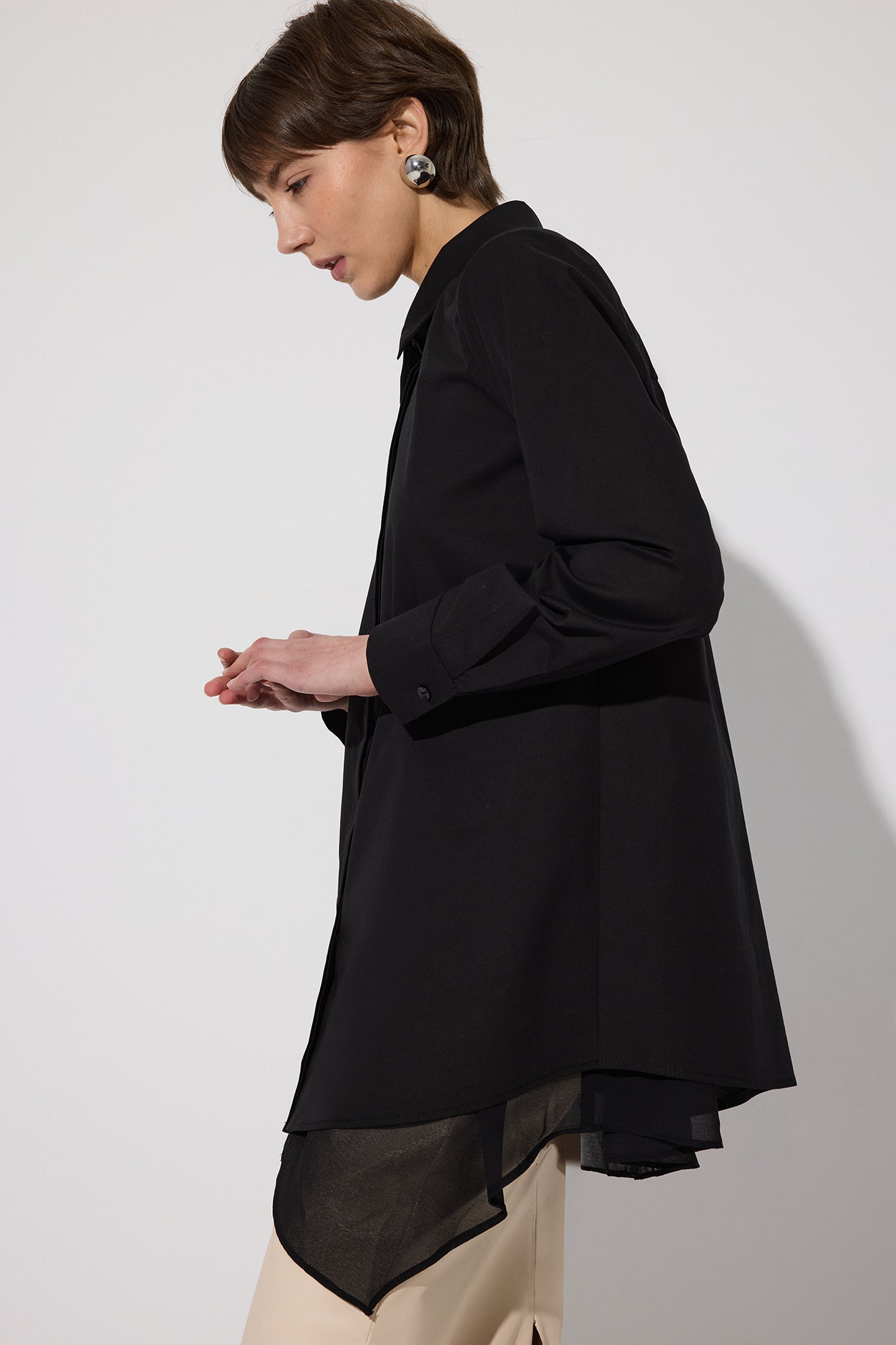 CHIFFON DETAILED POPLIN SHIRT