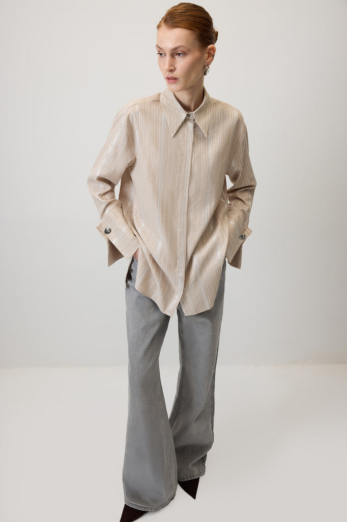 STONE EMBROIDERED STRIPED POPLIN SHIRT