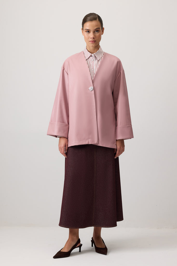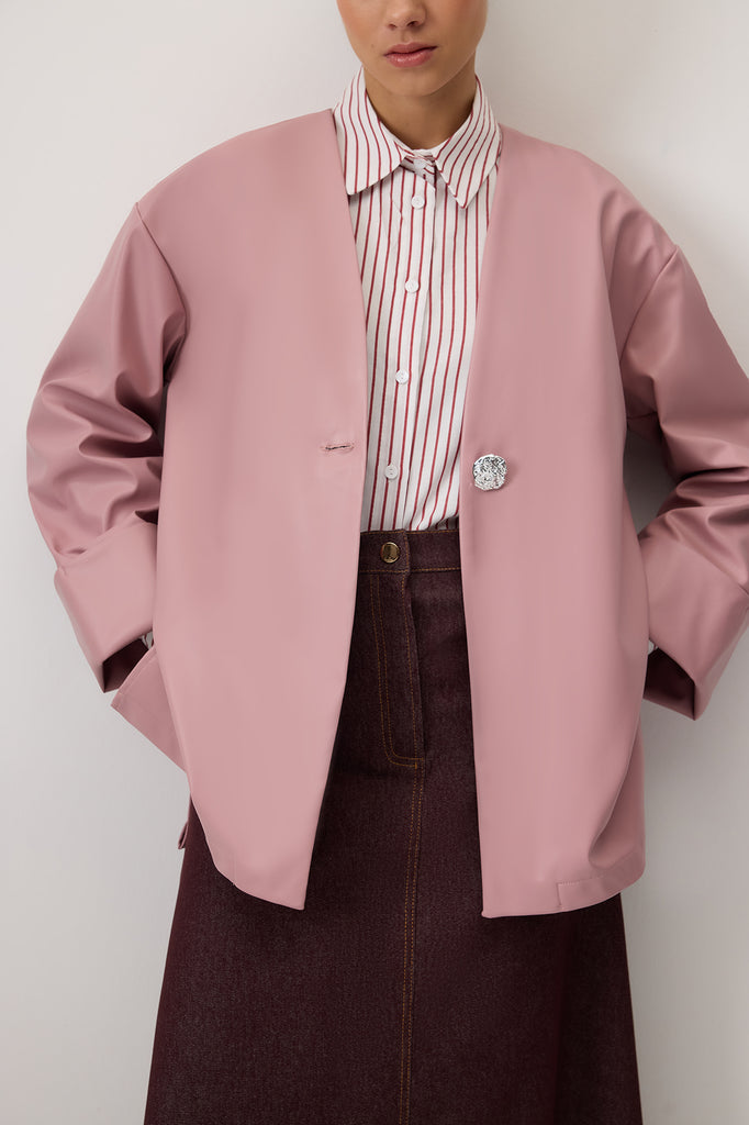 BUTTONED FAUX LEATHER JACKET