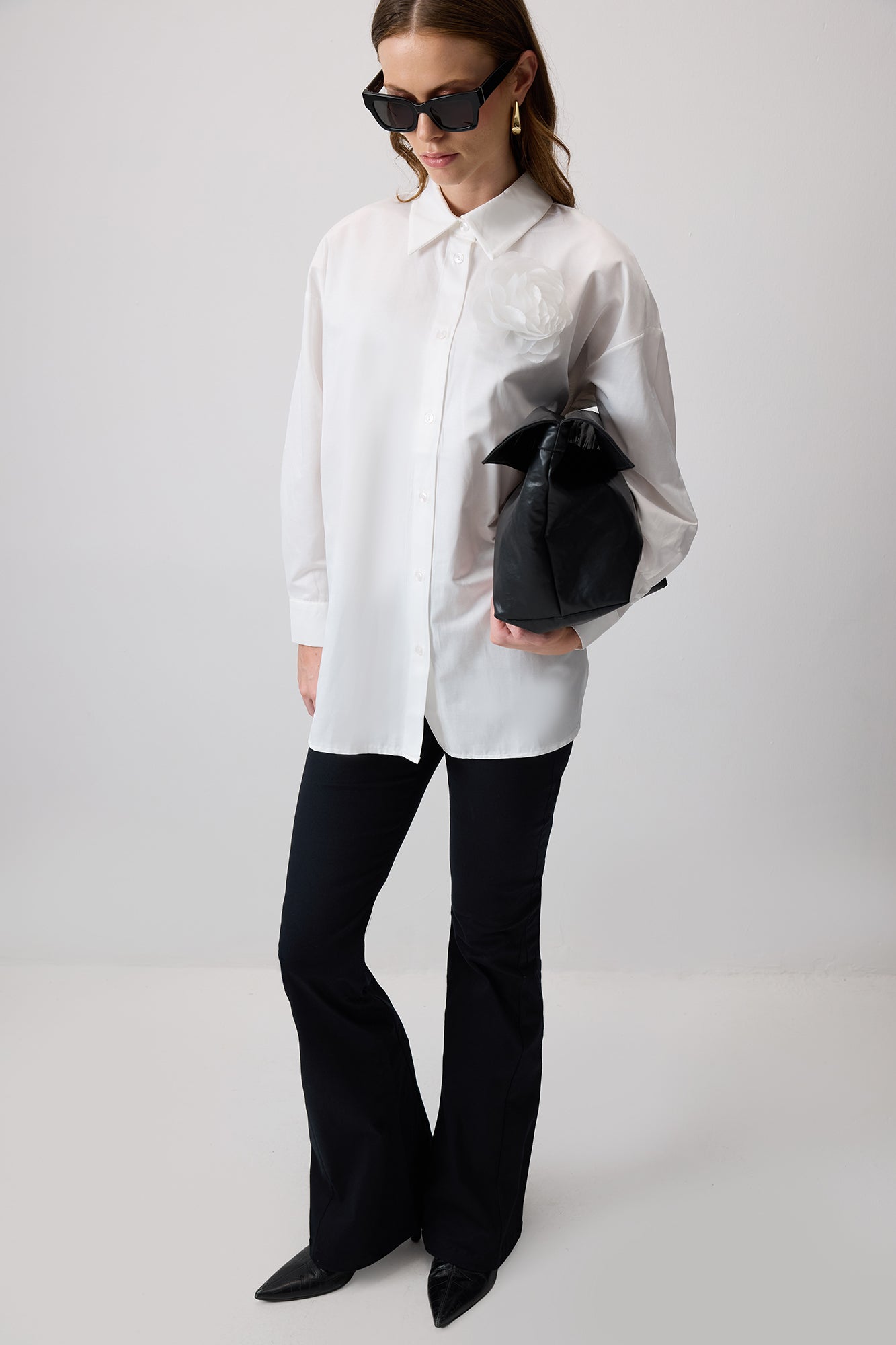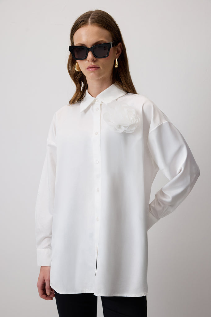 SHIRT WITH ORGANZA FLORAL BROOCH