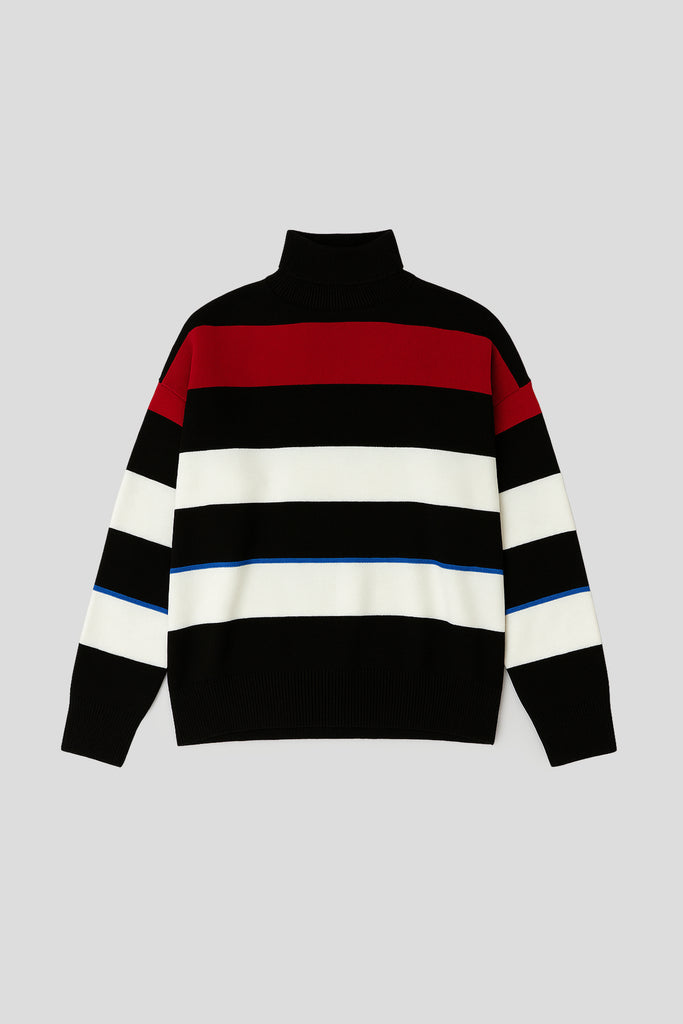This stylish striped knitwear skirt features a bold design with contrasting black, white, and blue stripes that add a modern touch to your wardrobe. The elastic waistband ensures comfort and flexibility, making it perfect for all-day wear. Whether you're dressing it up or keeping it casual, this skirt is versatile and flattering for any occasion.
