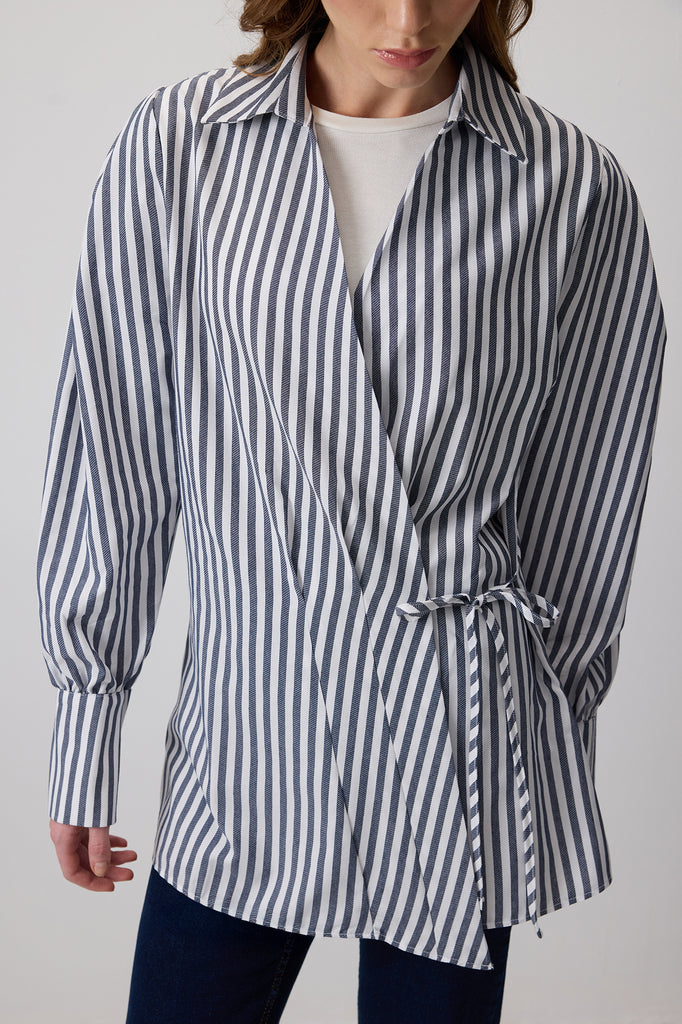 SIDE TIE STRIPED SHIRT