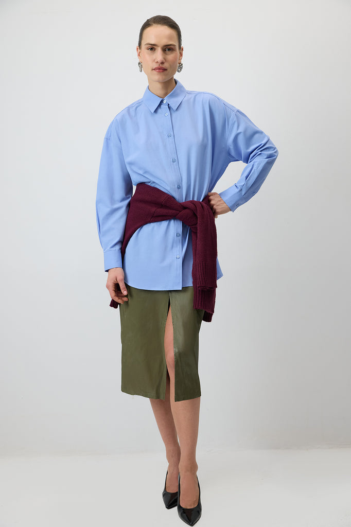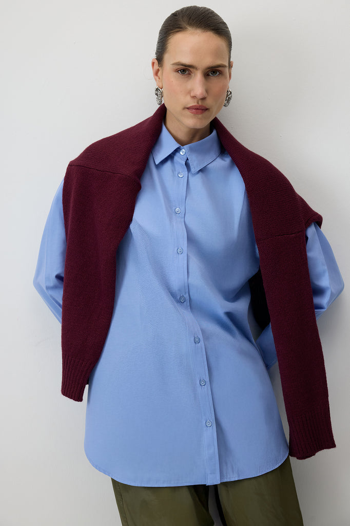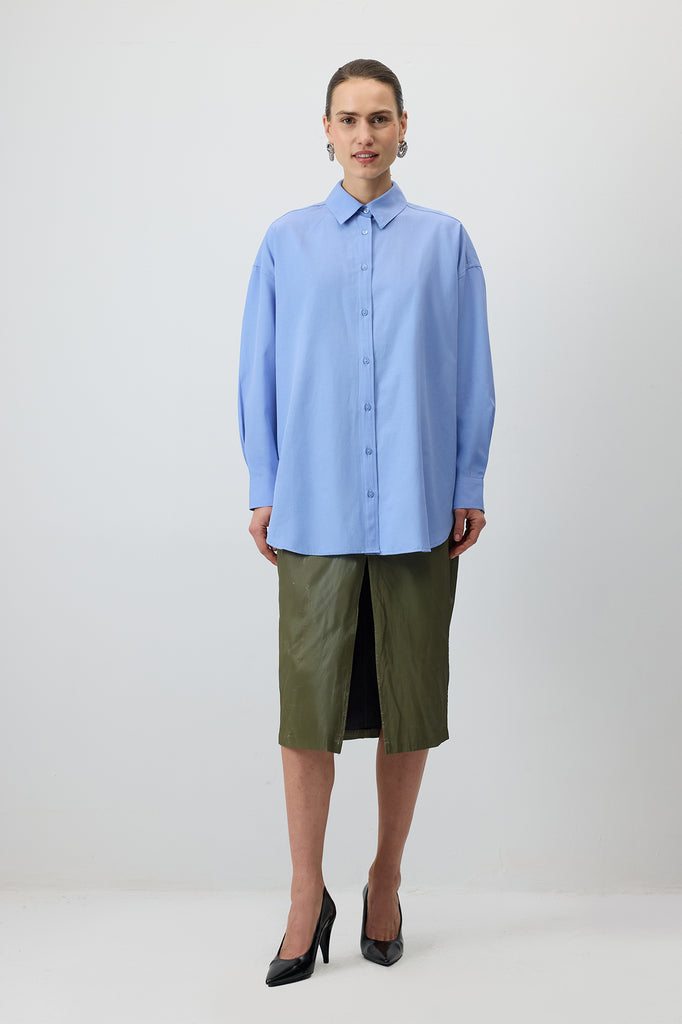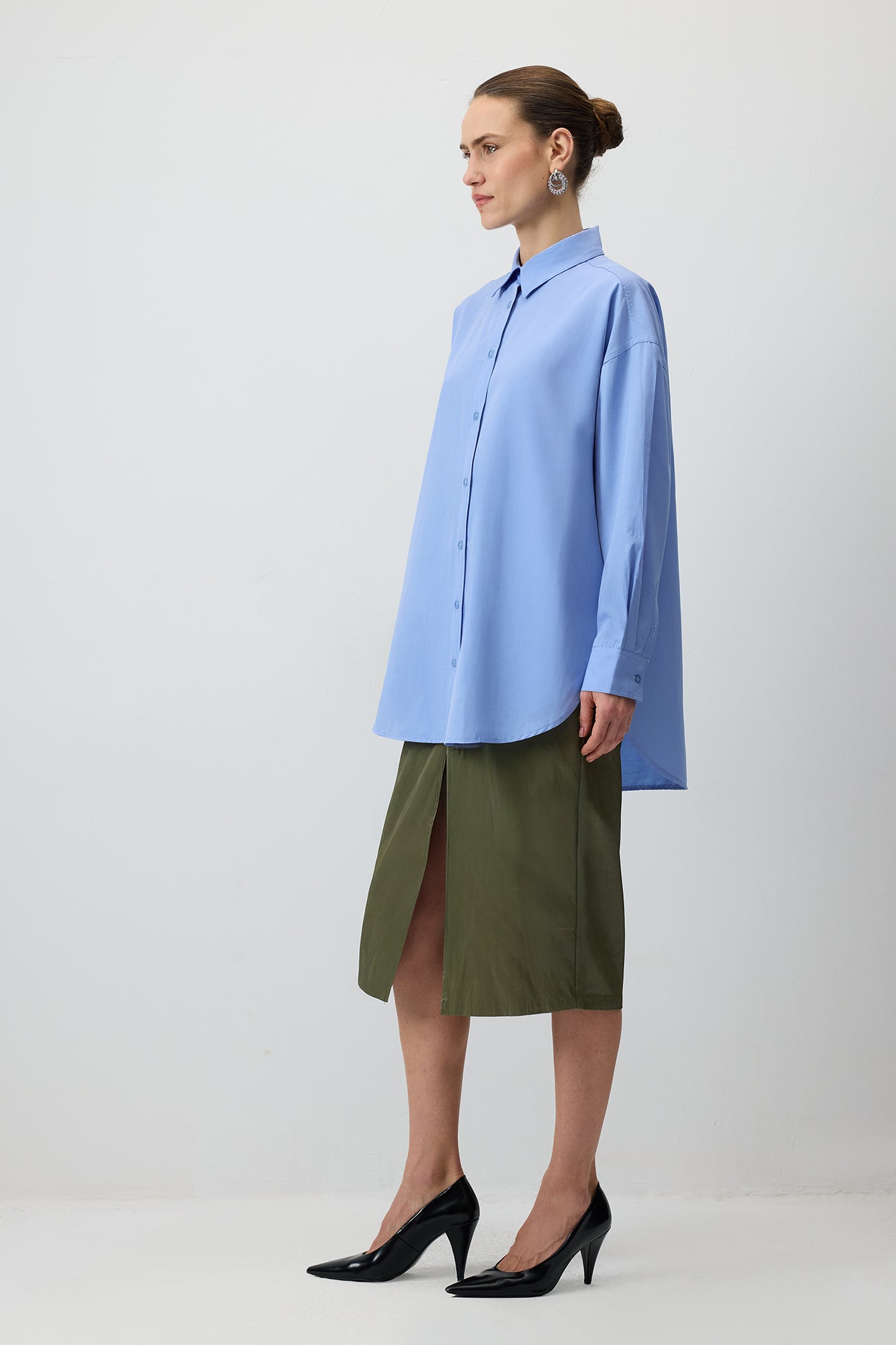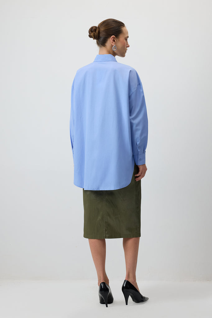 This Relaxed Fit Poplin Shirt offers effortless sophistication and comfort. The smooth poplin fabric has a soft, breathable texture, making it an ideal choice for all-day wear. Designed with a relaxed fit, this shirt creates a laid-back silhouette, while the classic button-down design adds a touch of timeless appeal. The soft blue color pairs easily with various outfits, whether you're aiming for a casual or polished look.