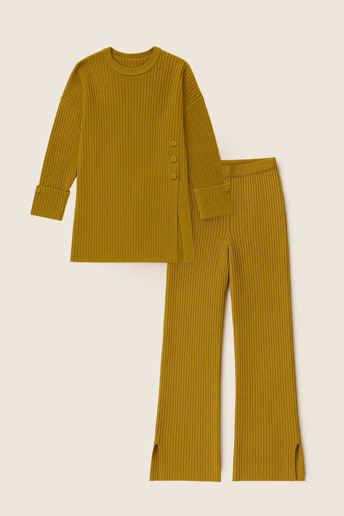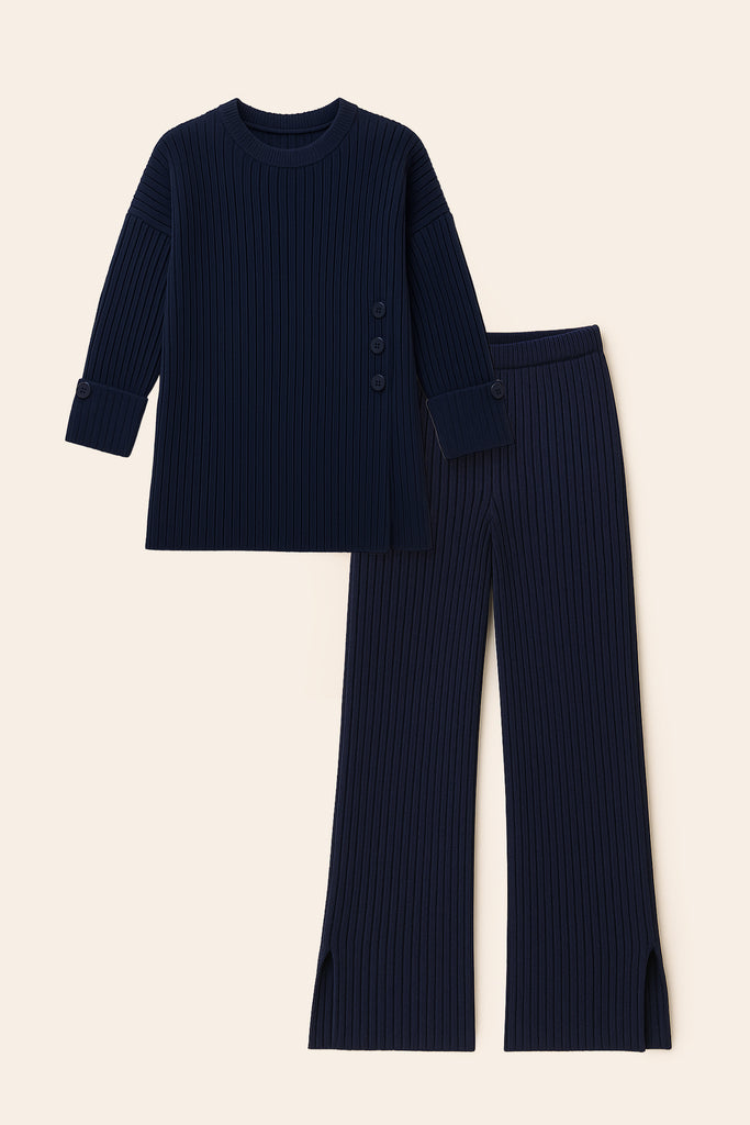 ASYMMETRIC JACKET AND PANTS SET WITH BUTTON DETAILS
