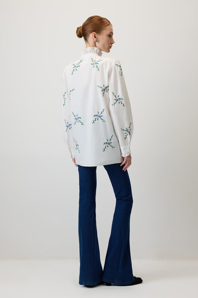 FLOWER EMBROIDERED POPLIN SHIRT