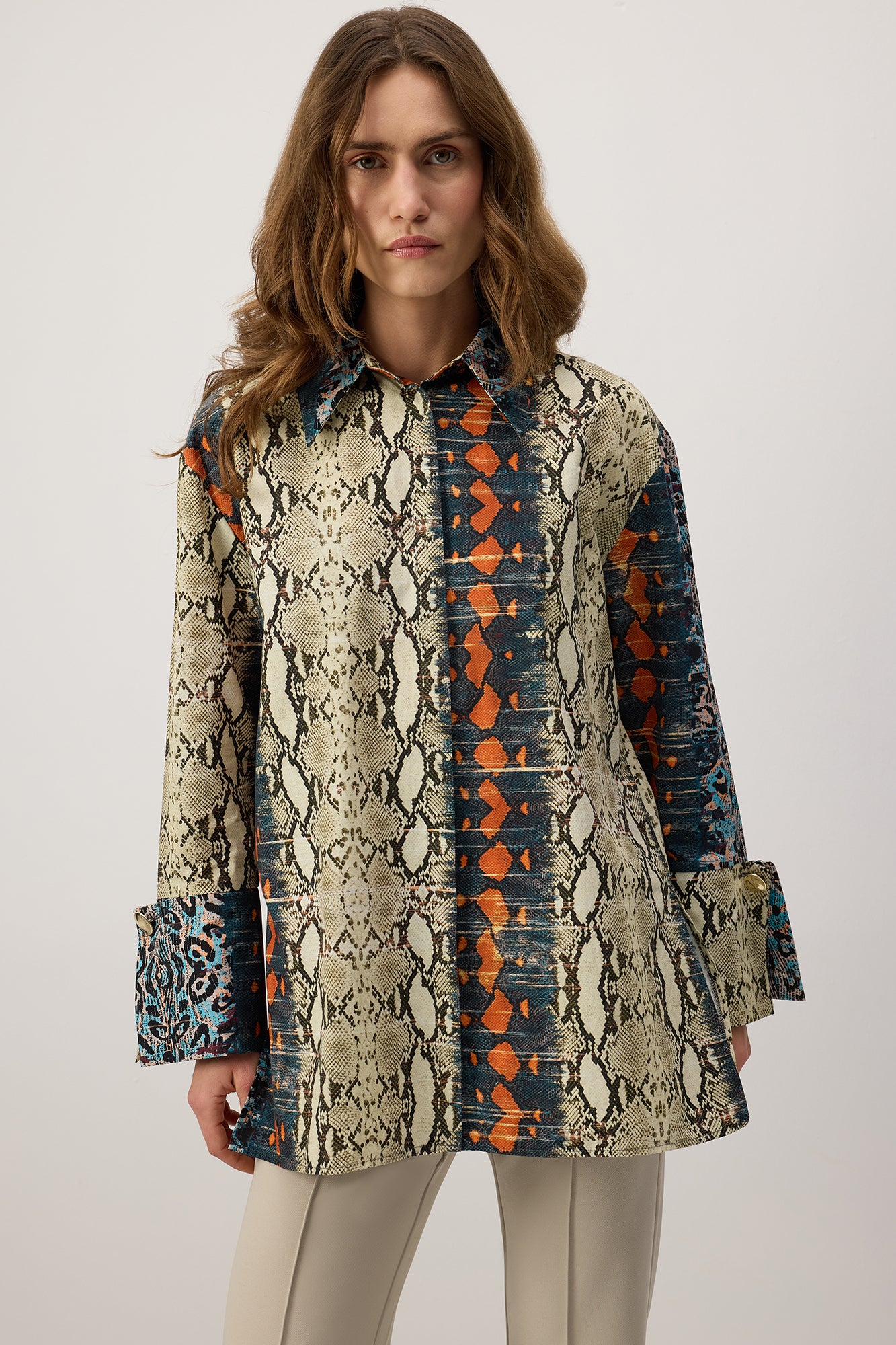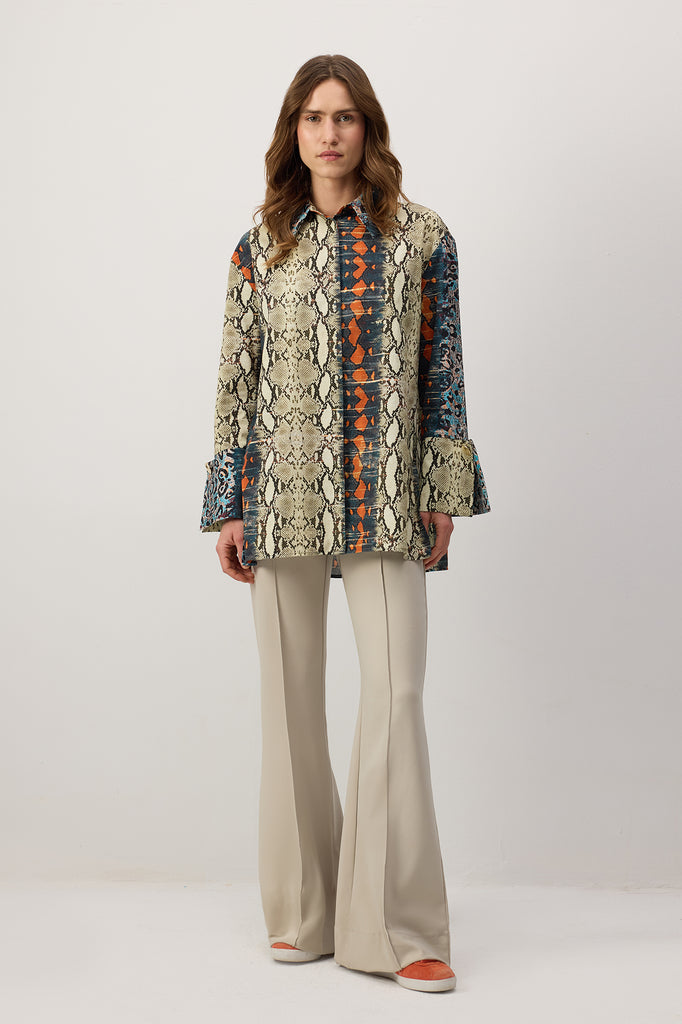 PATTERNED WIDE CUFF POPLIN SHIRT