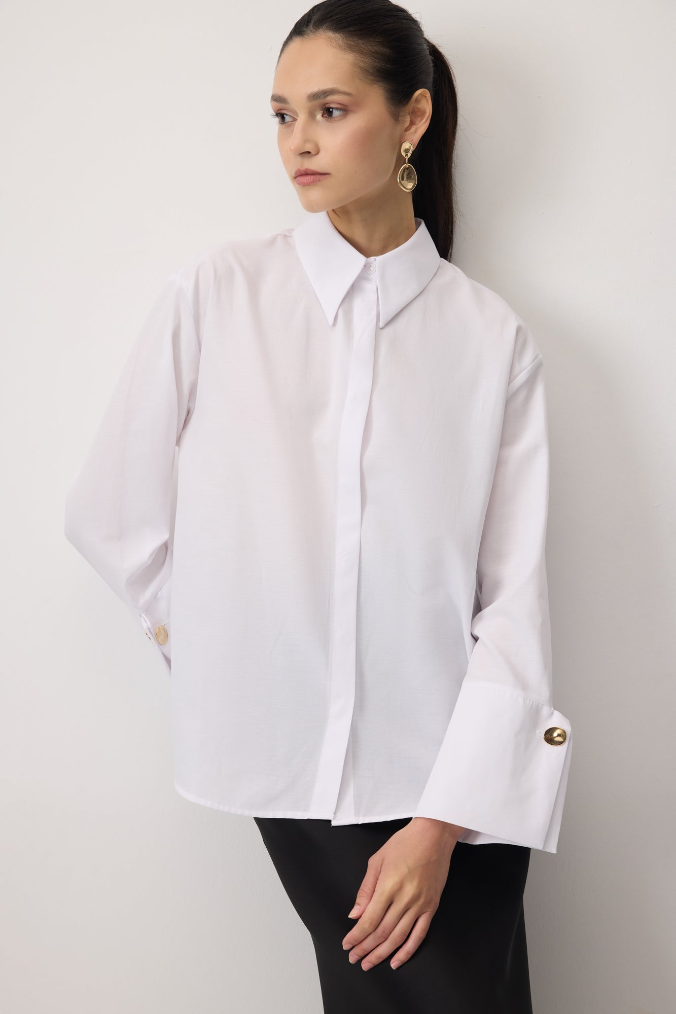 WIDE CUFF CROP POPLIN SHIRT