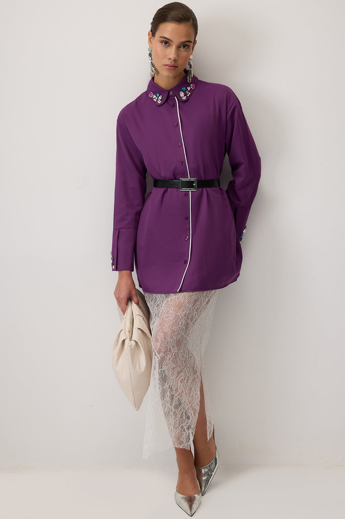 STONE EMBROIDERED STRIPED POPLIN SHIRT