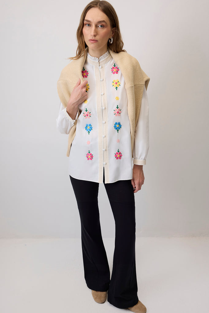 FLOWER EMBROIDERIED POPLIN SHIRT