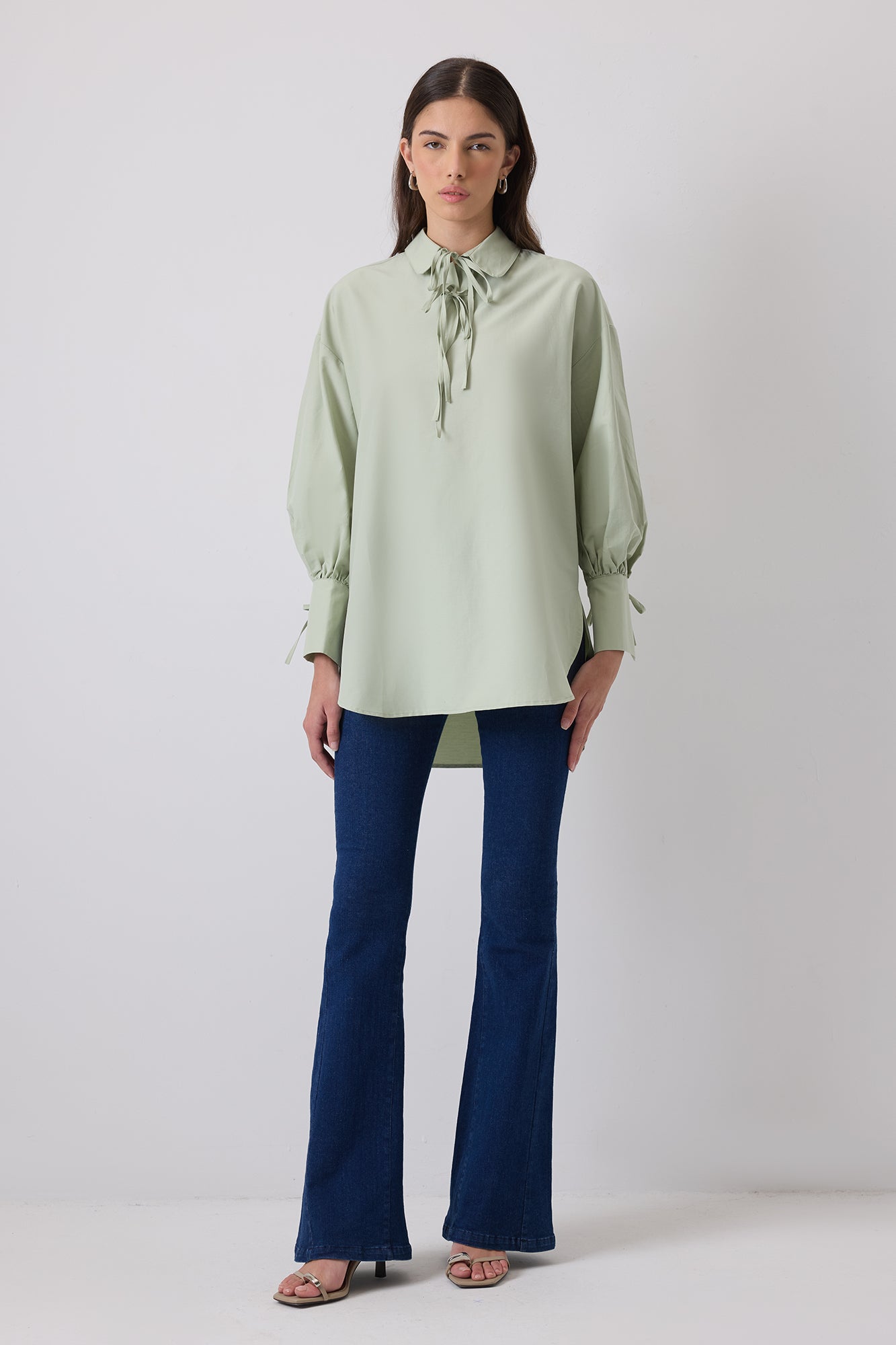 100% COTTON BINDING SHIRT COLLAR TUNIC