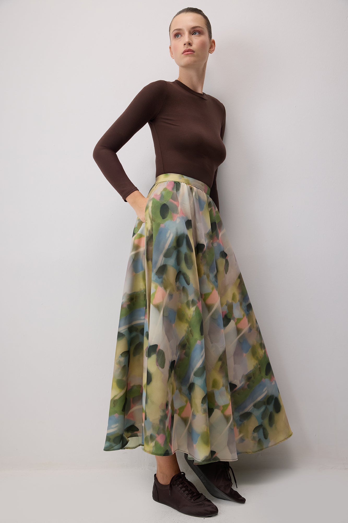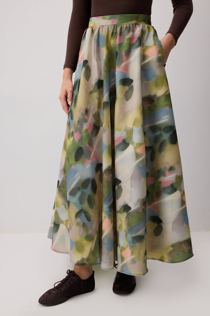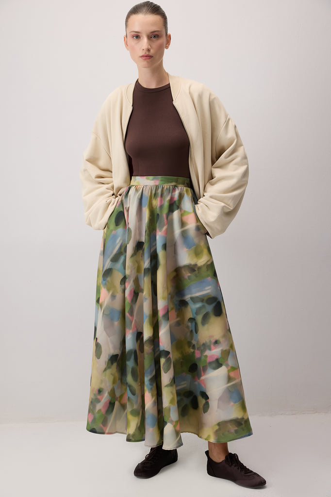 PATTERNED SATIN SKIRT