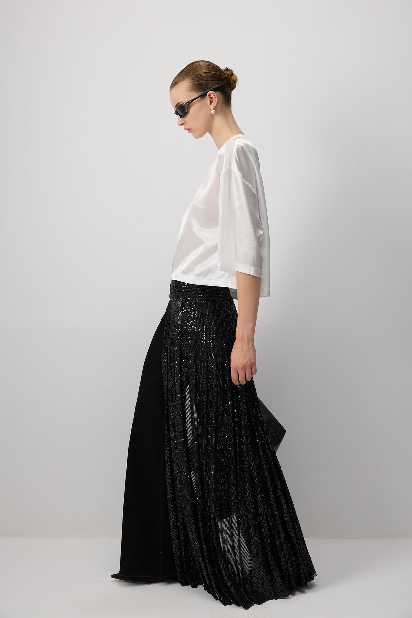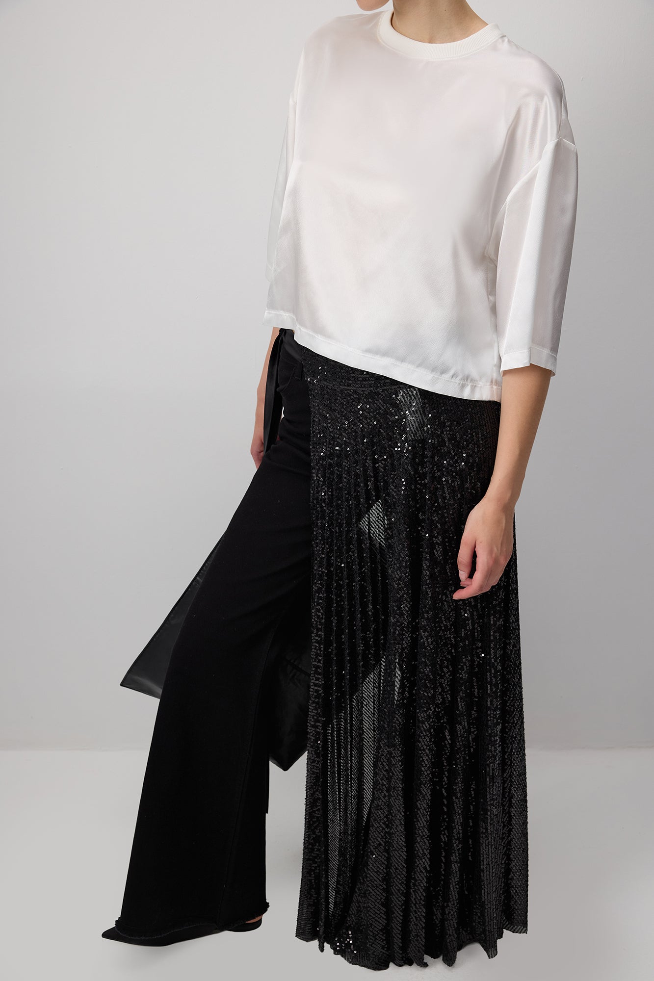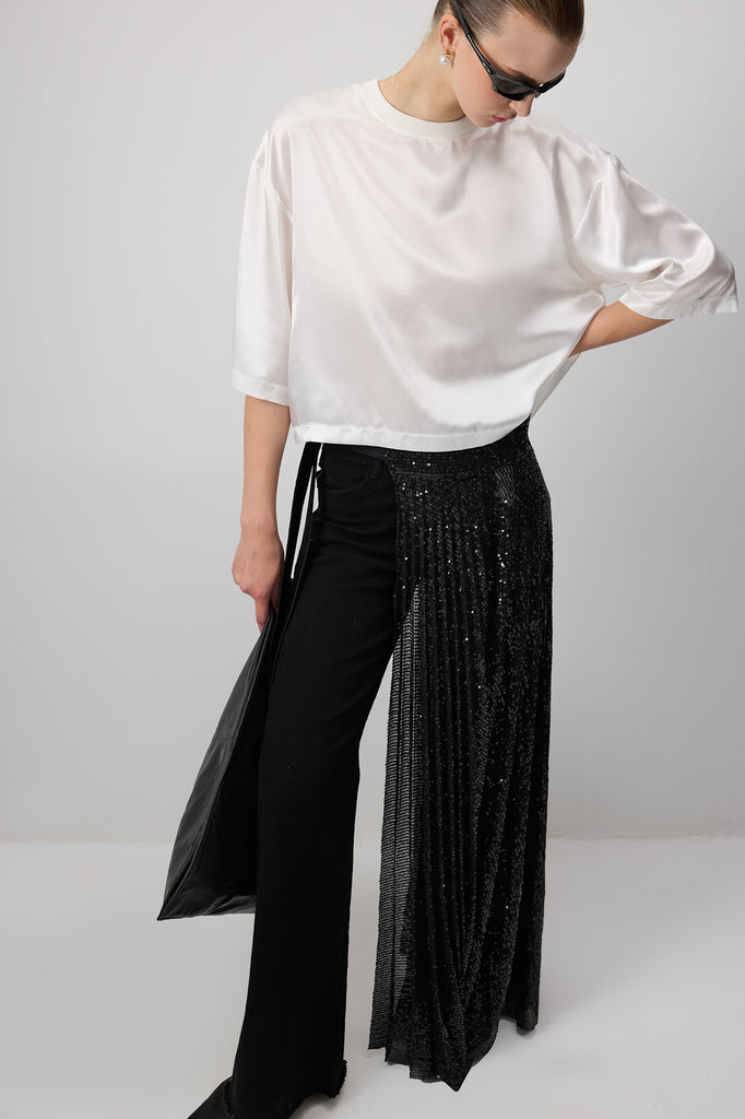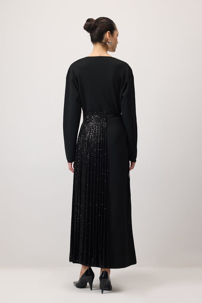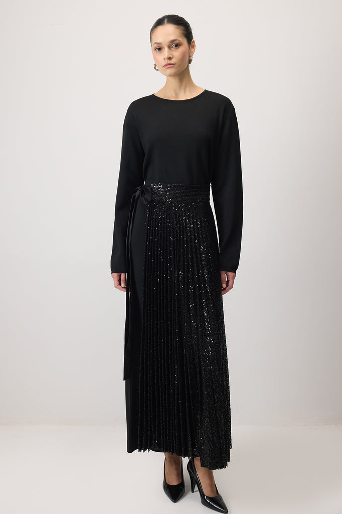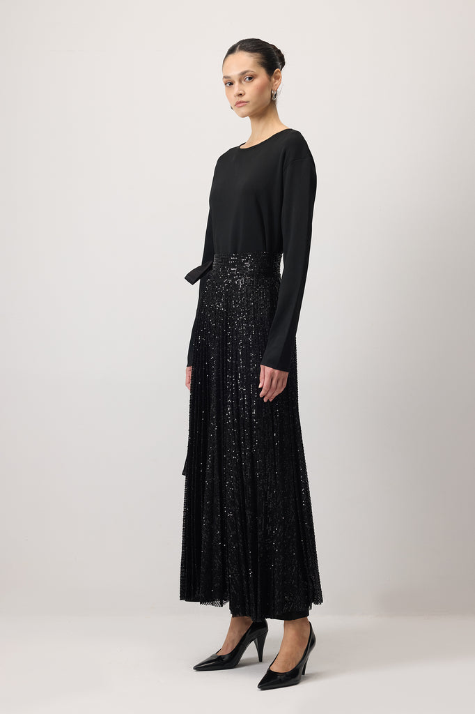 SEQUIN PLEATED OVERLAU SKIRT