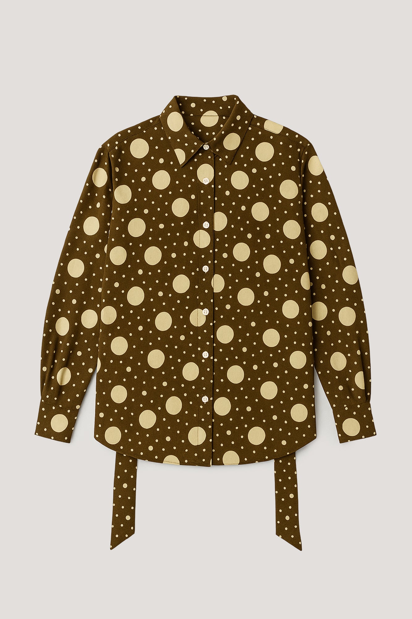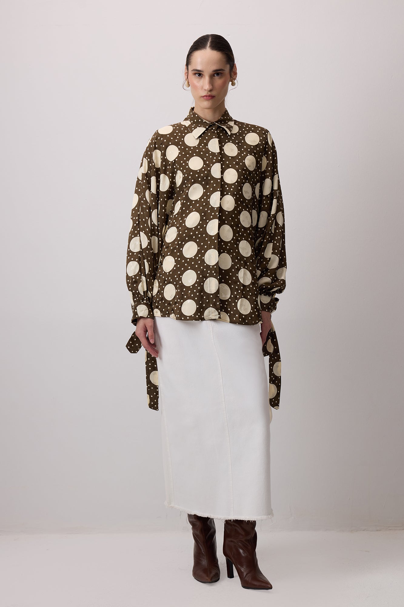 POLKA DOT PATTERNED BALLOON SLEEVE SHIRT