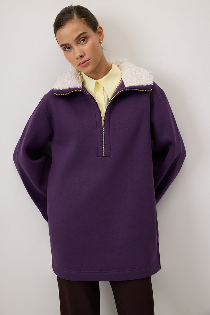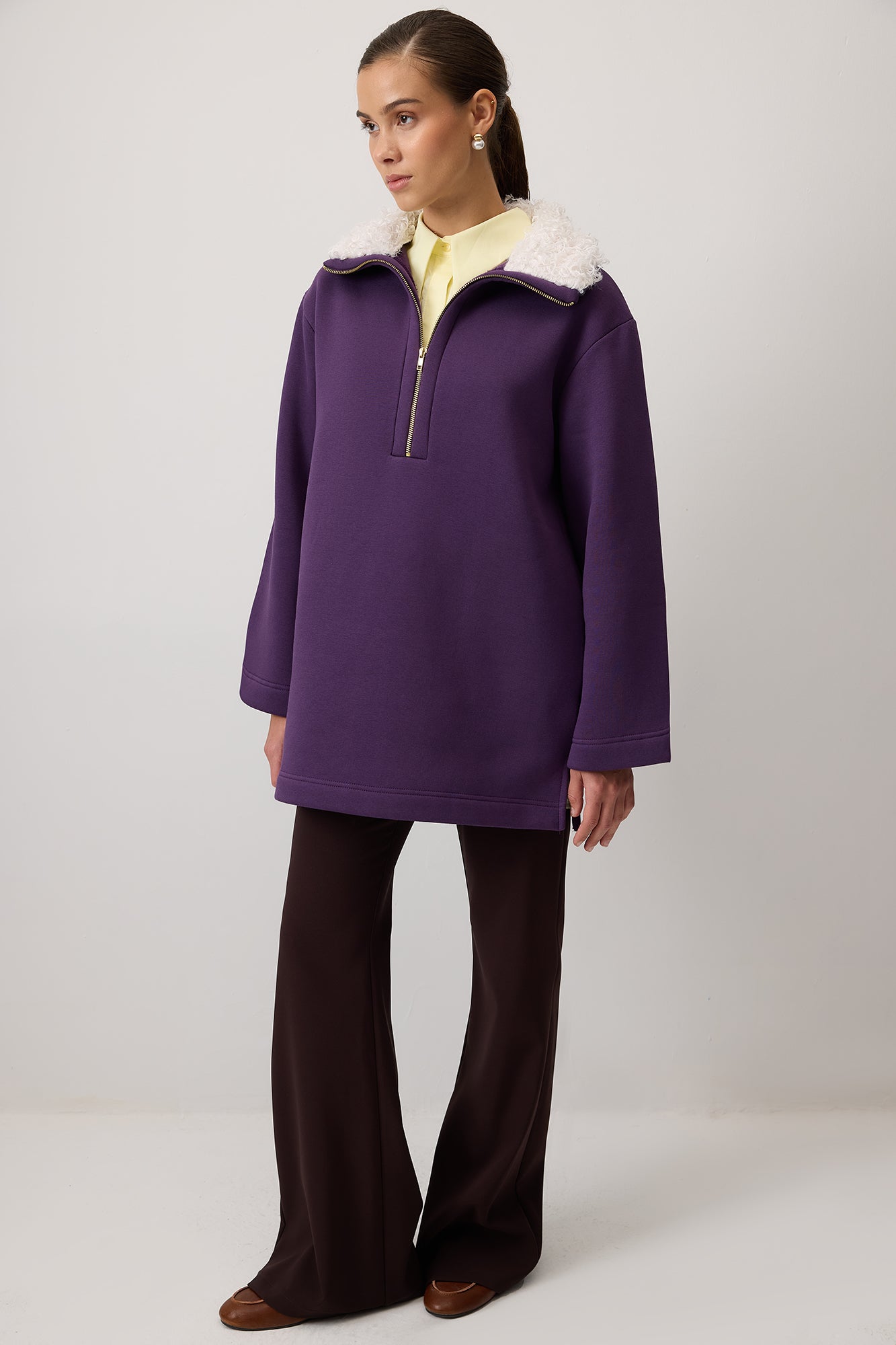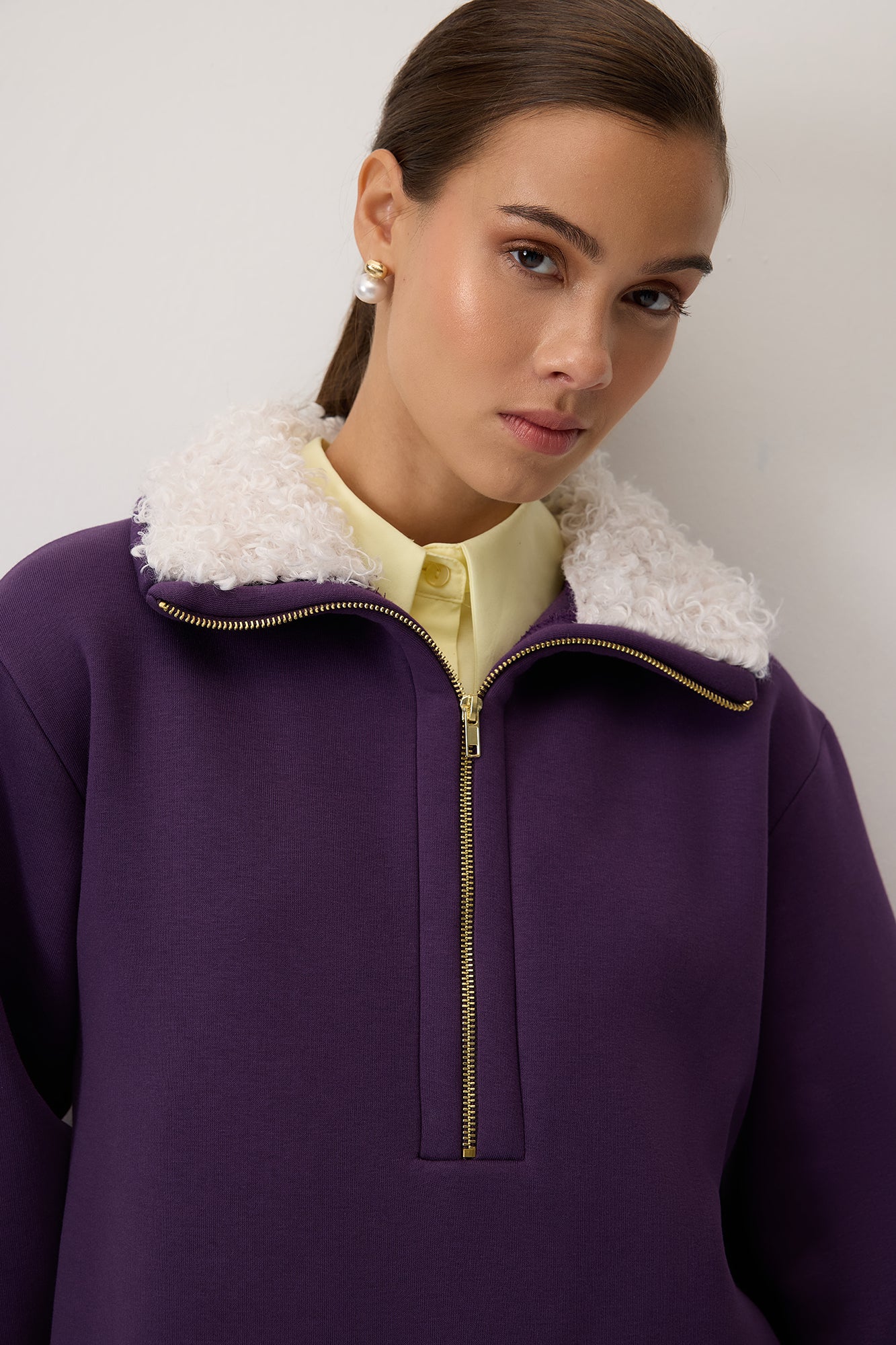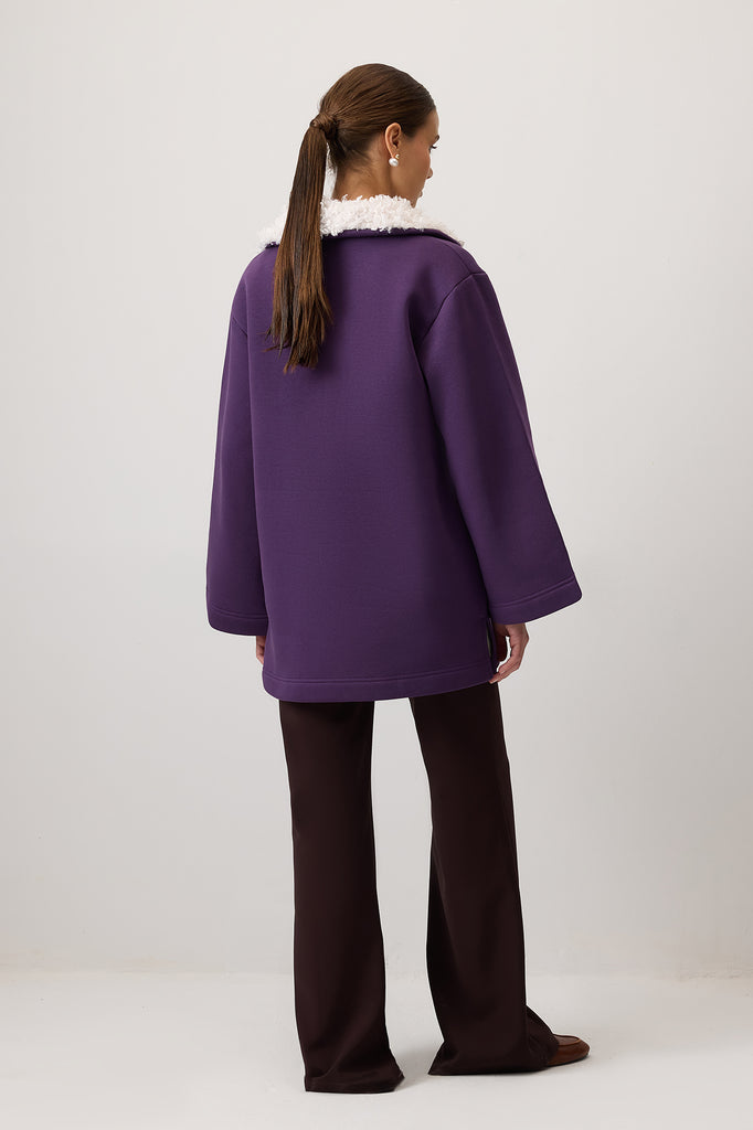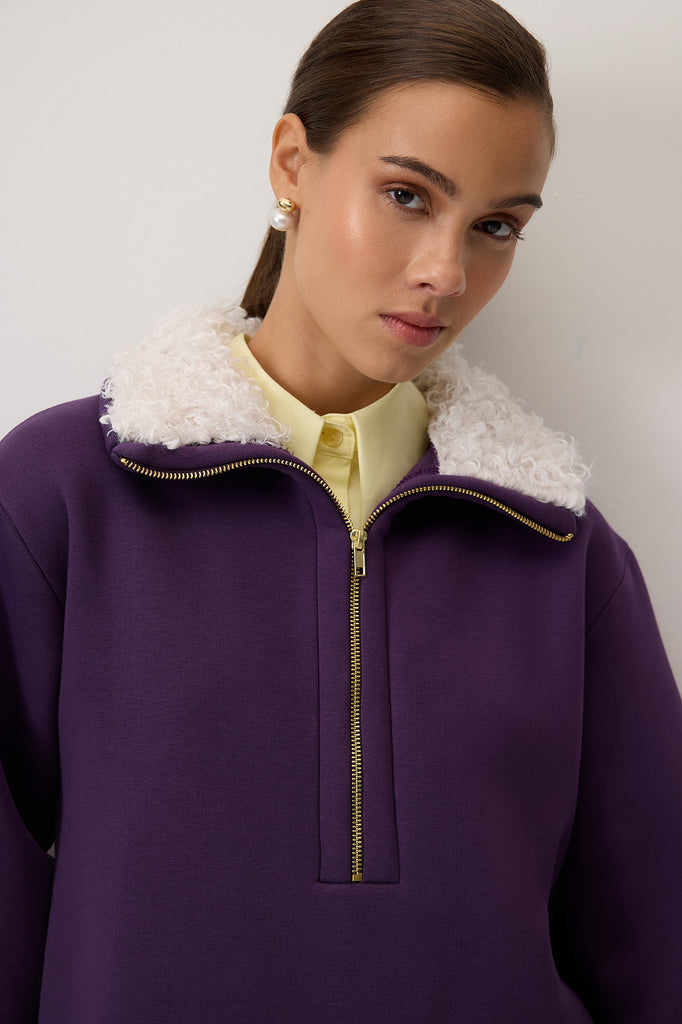 FAUX FUR COLLAR SWEATSHIRT