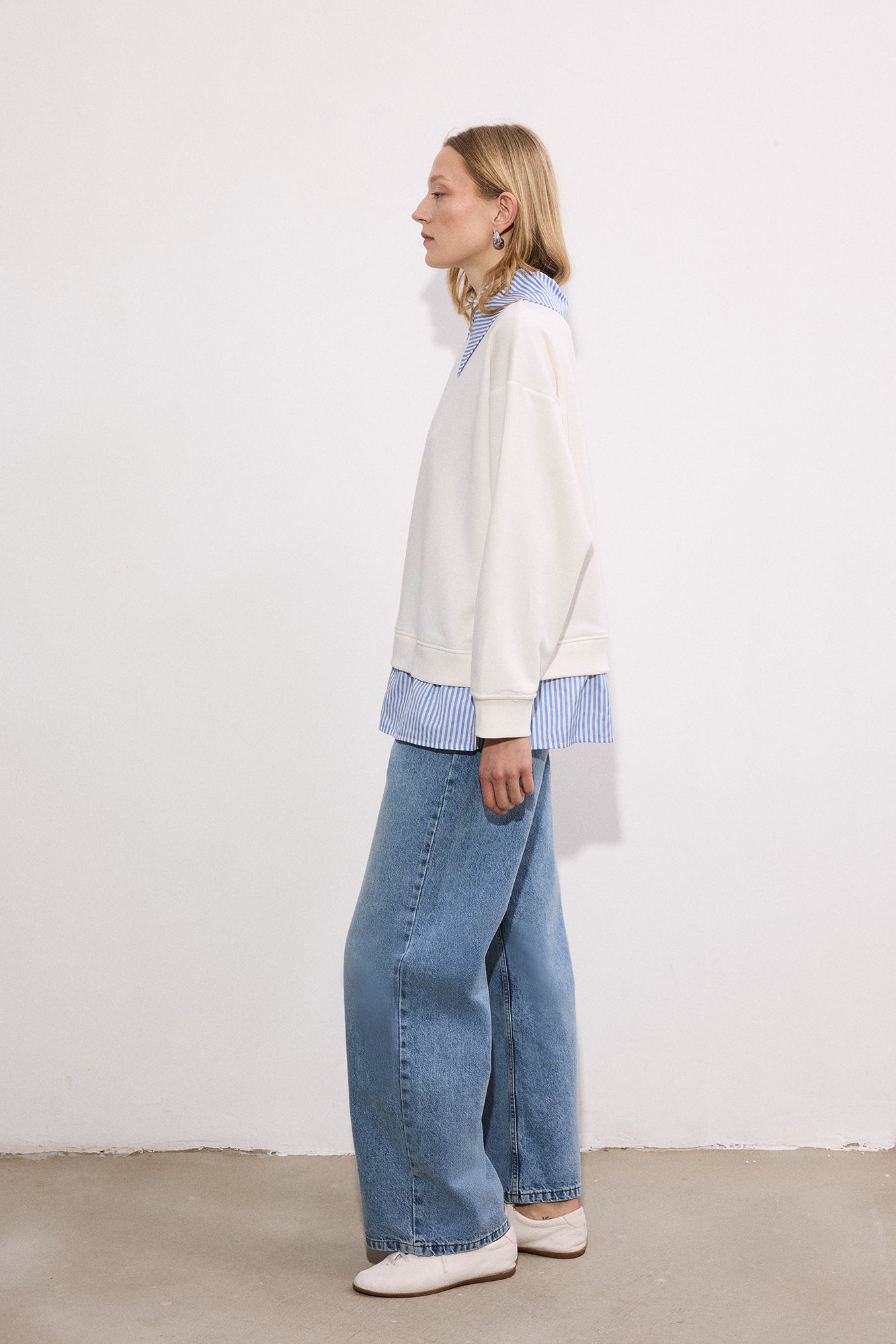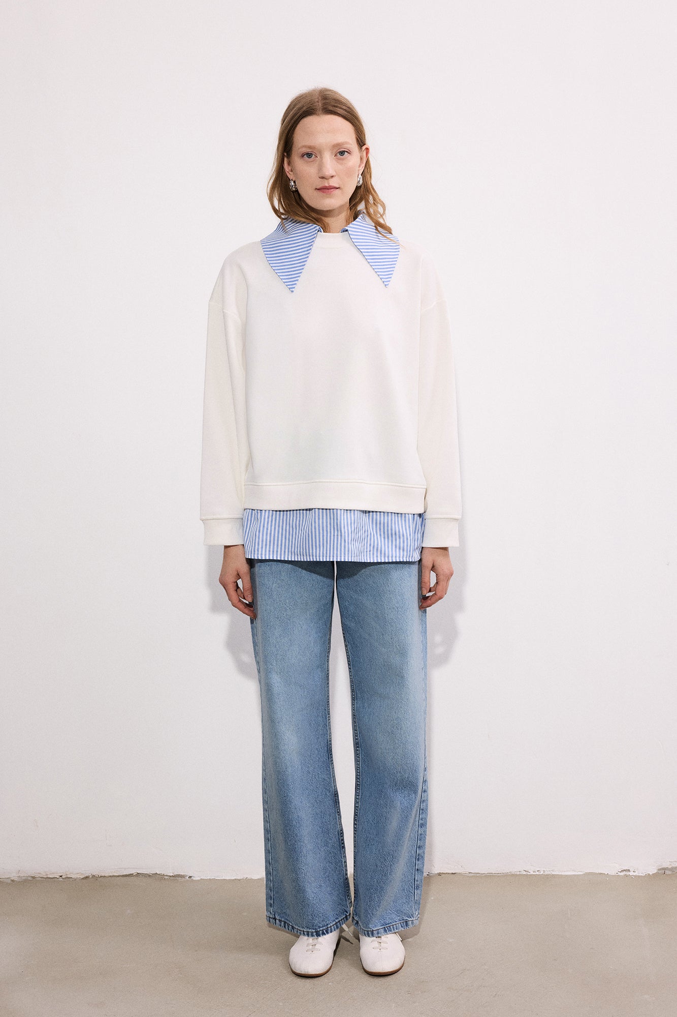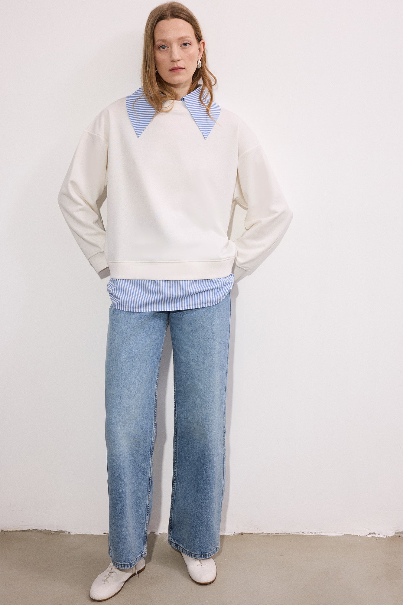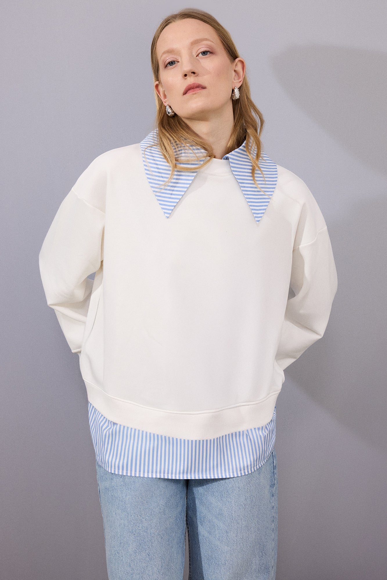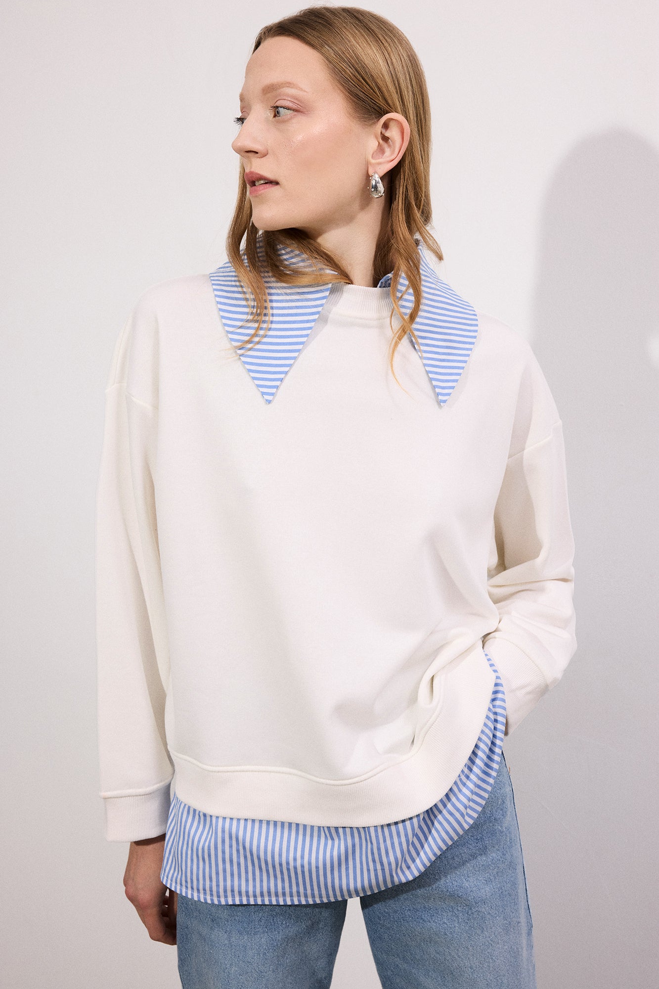 STRİPED WİDE-NECK SWEATSHİRT
