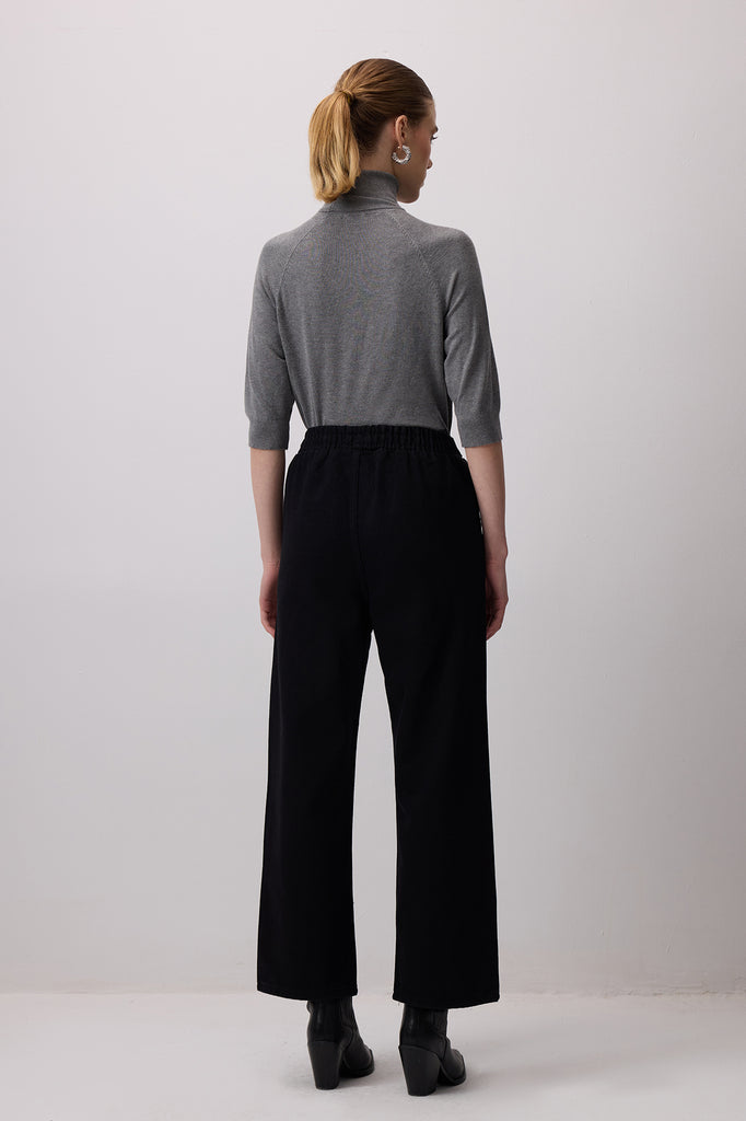 BELTED WAIST DENIM TROUSERS