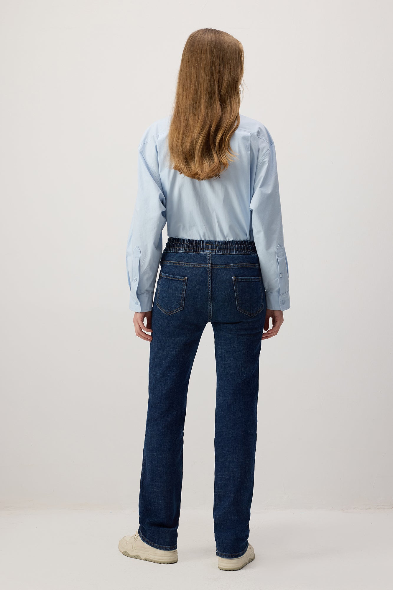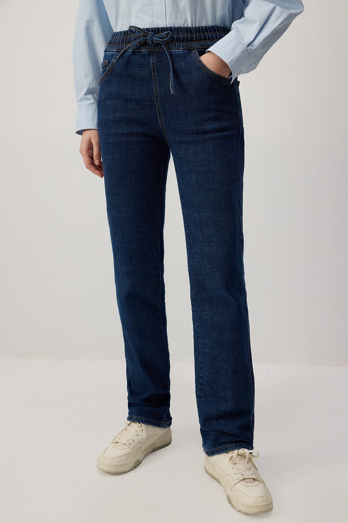 ELASTICATED WAIST DENIM TROUSERS