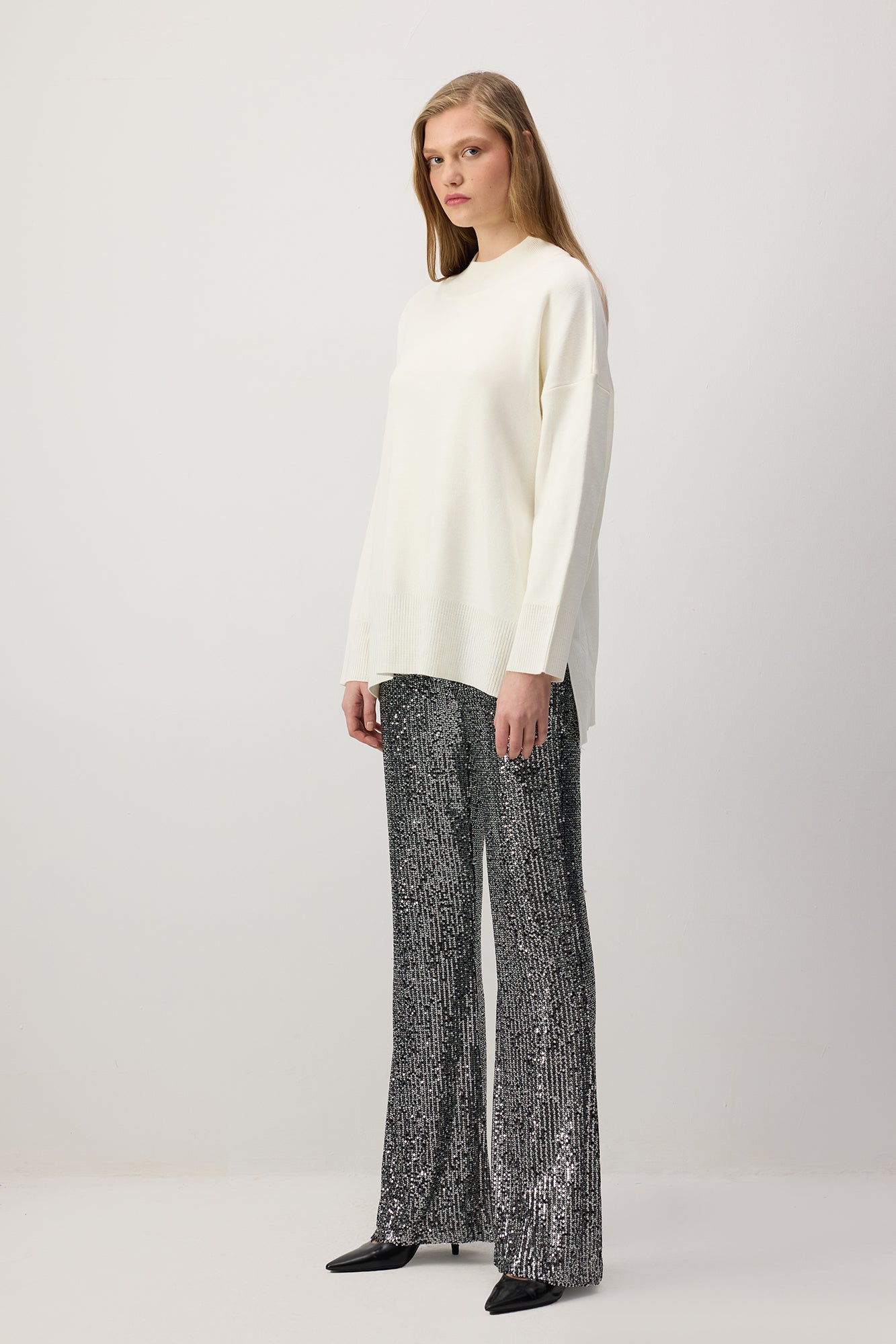 SEQUINED WIDE-LEG TROUSERS